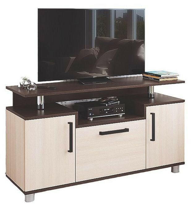 Тумба под телевизор ТВ 003-К2, с ящиком, венге/дуб молочный (1300х410х608)