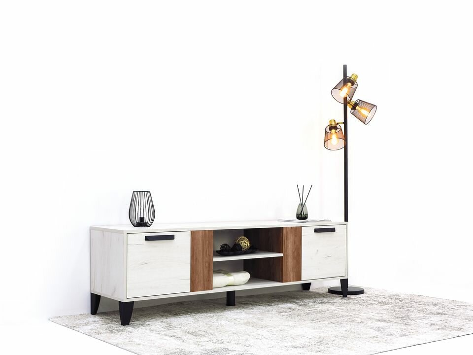 Тумба под телевизор на ножках, ЛДСП, ателье светлый/белый, 160*57*40 см, Парус-8