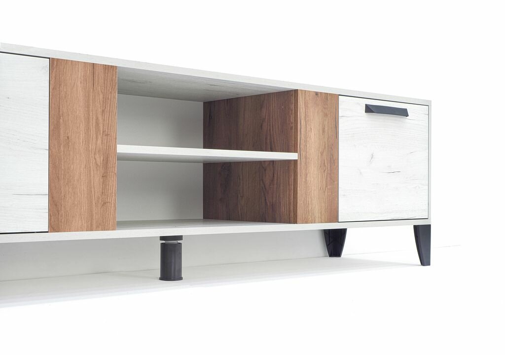 Тумба под ТВ Парус-7 Дуб юкон/ белый, ЛДСП с ножками , полками, дверцами для гостиной, спальни, дома, дачи 1652х400х500 тэкс