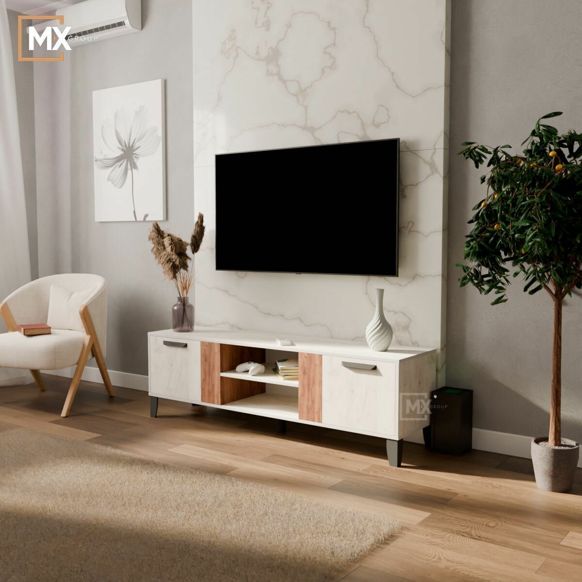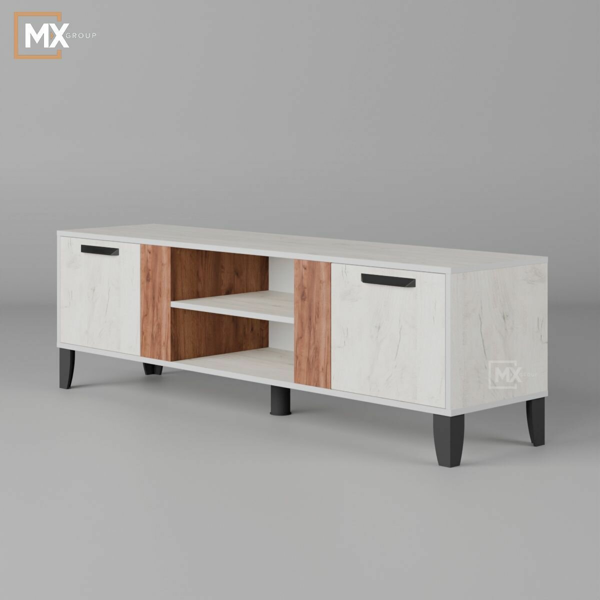 Тумба ТВ в гостиную «Парус-8», белый/ателье светлое (1600х400х570)