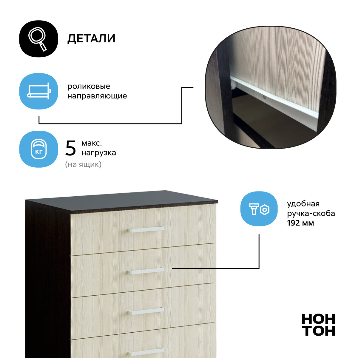 Комод для одежды Нонтон Фиеста венге / лоредо, 85х50х86.6 см интересное: