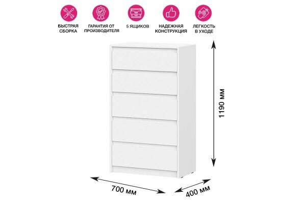 Купить Комод Айден КМ06-700 - Белый ЛДСП, МебельТИ