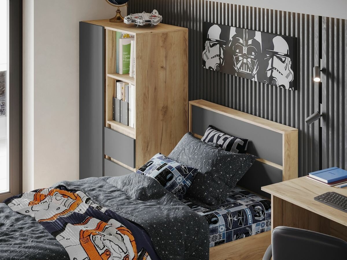 Прикроватная тумба для спальни Даллас ТБ 01 (500х370х405 мм), дуб каньон/МДФ софт графит