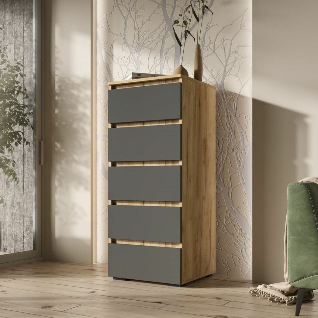 Комод 5 ящиков "Хелен" КМ 03 - Дуб крафт золото / Серый графит