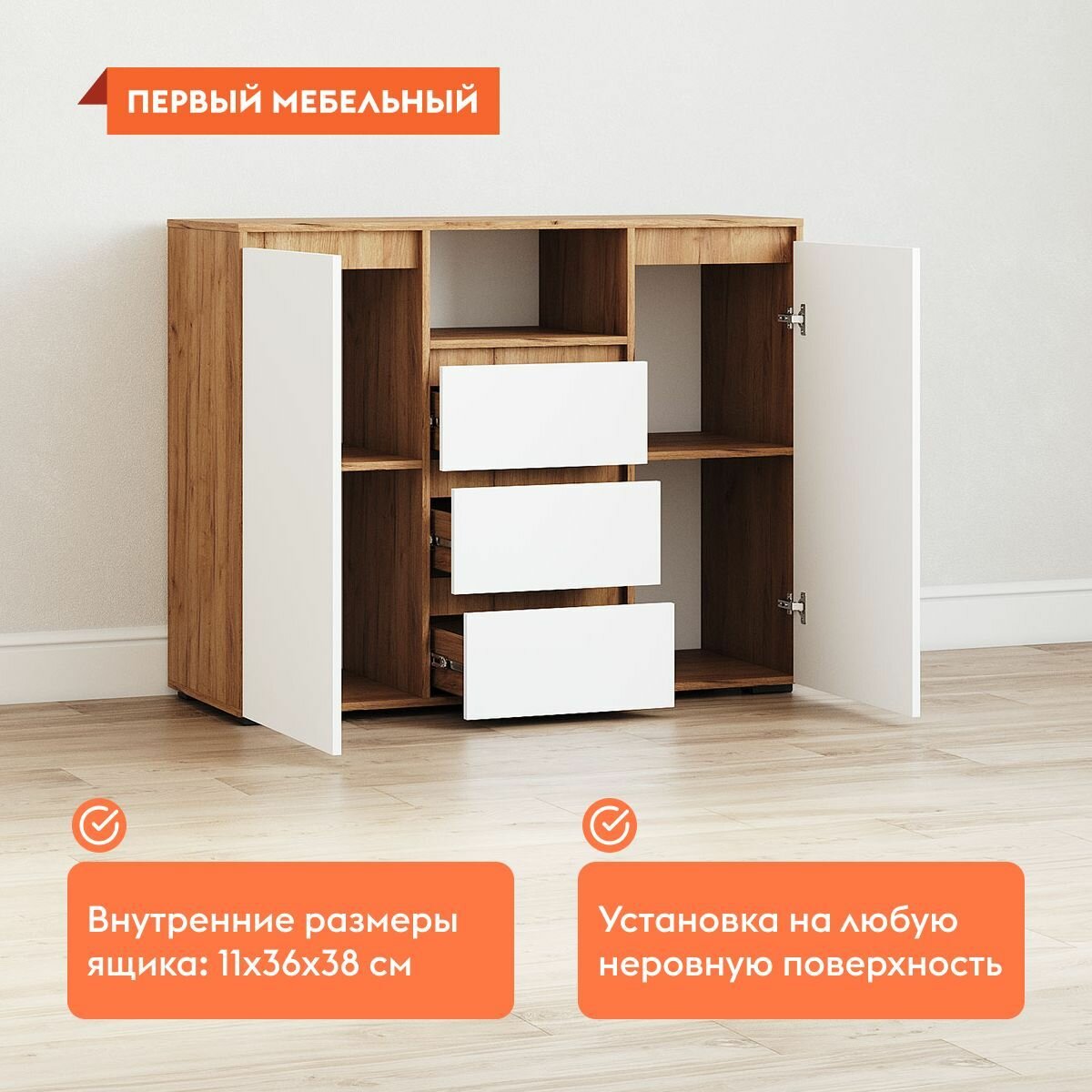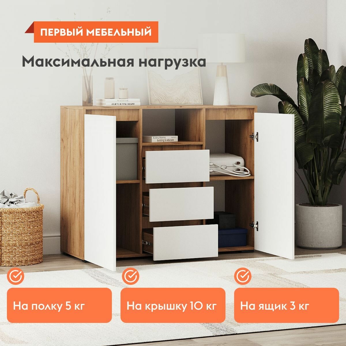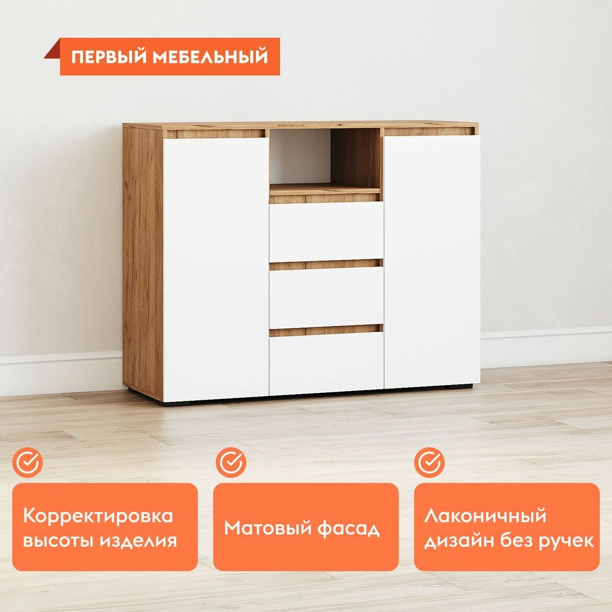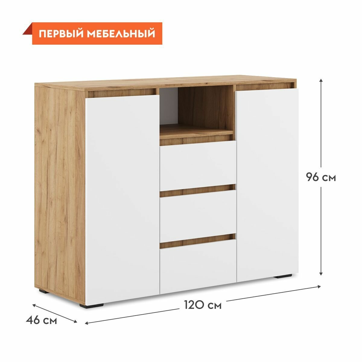 Комод хелен КМ 01, 1202 (1.202х0.958х0.460) фасад белый/корпус дуб крафт золотой