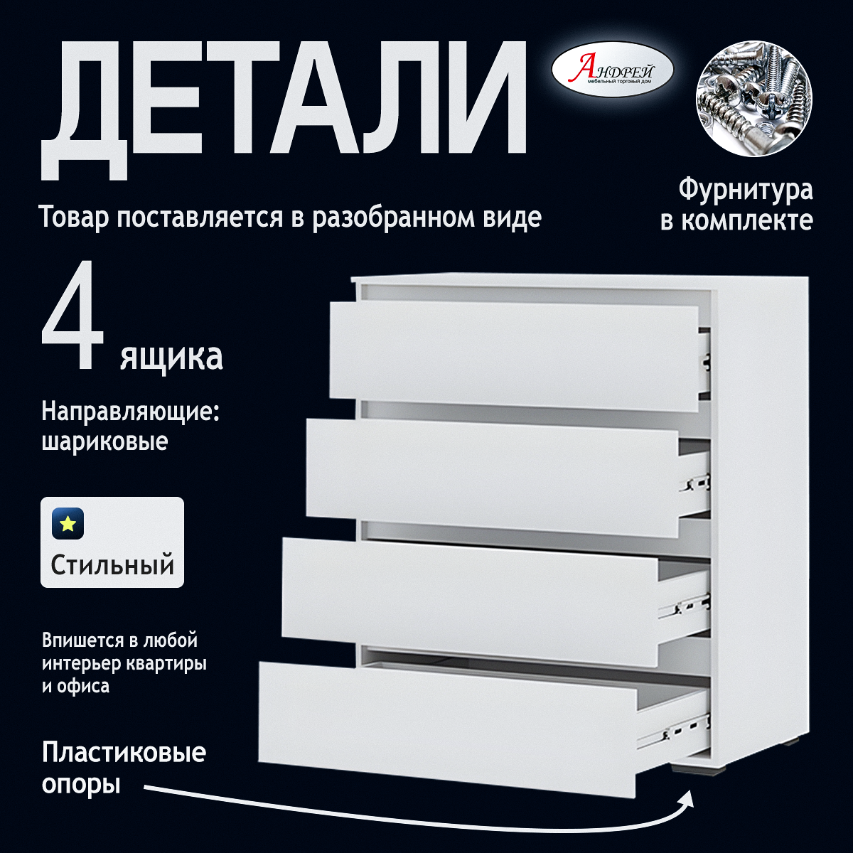 СохранитьКомод 4 ящика хелен КМ 02 интересное:
