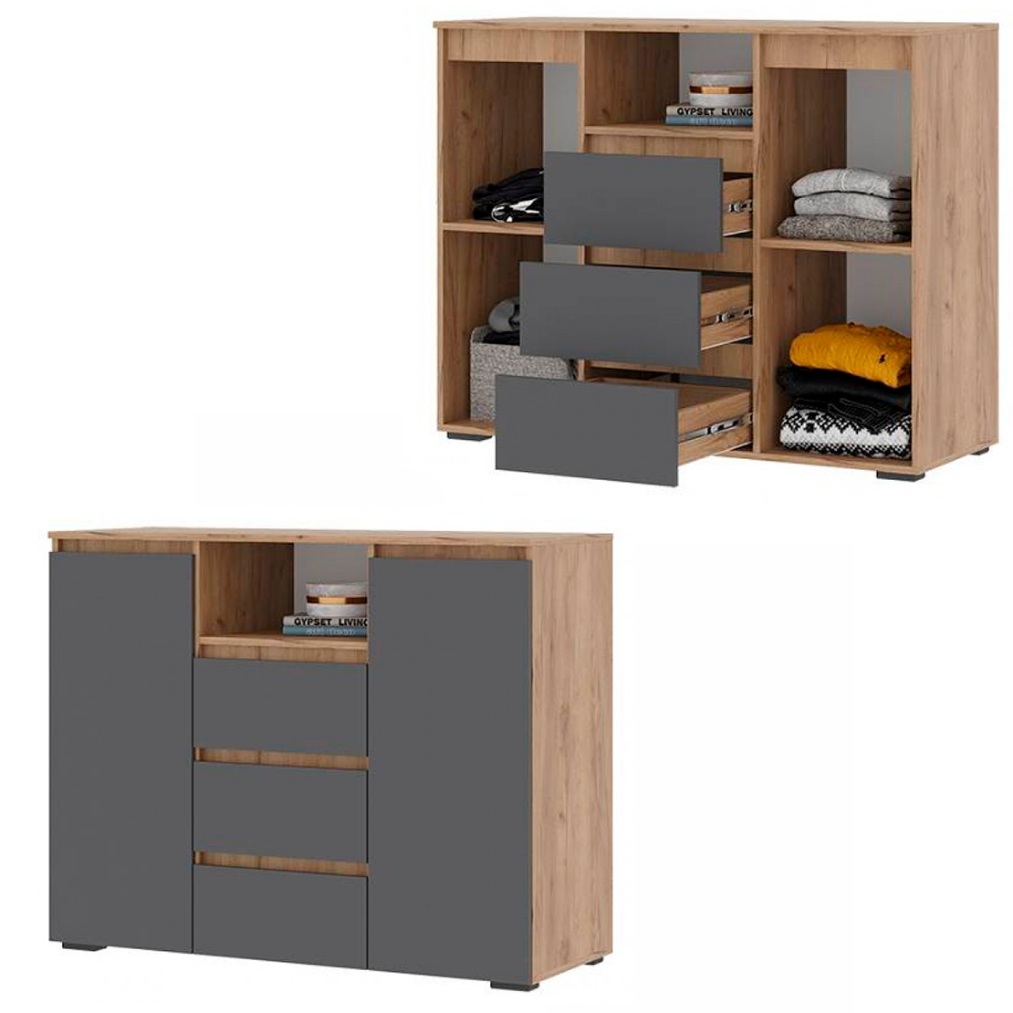 Комод Бася, ЛДСП, серый/дуб крафт белый, 99x120x41,4 см., для дома и дачи