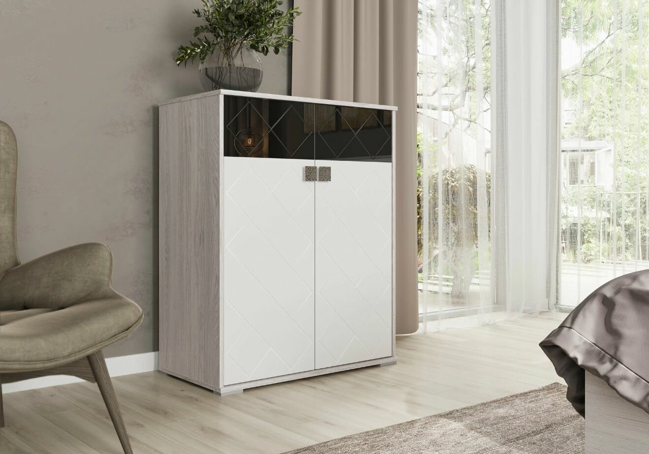Комод 4 ящика и 2 створки КМ 555М «Бася» (Дуб крафт серый/Дуб крафт белый) CM
