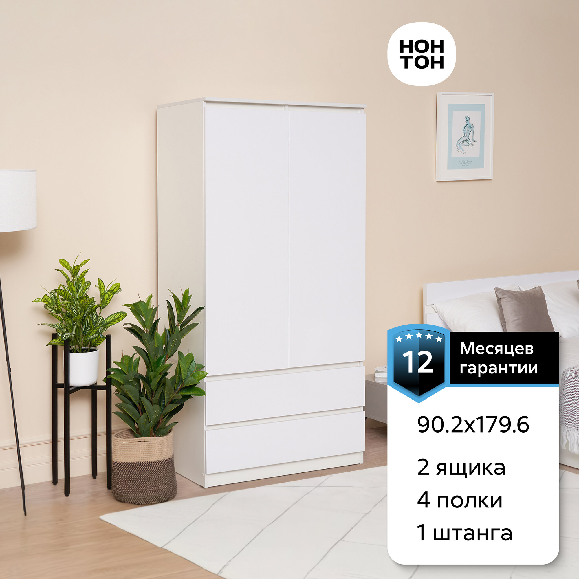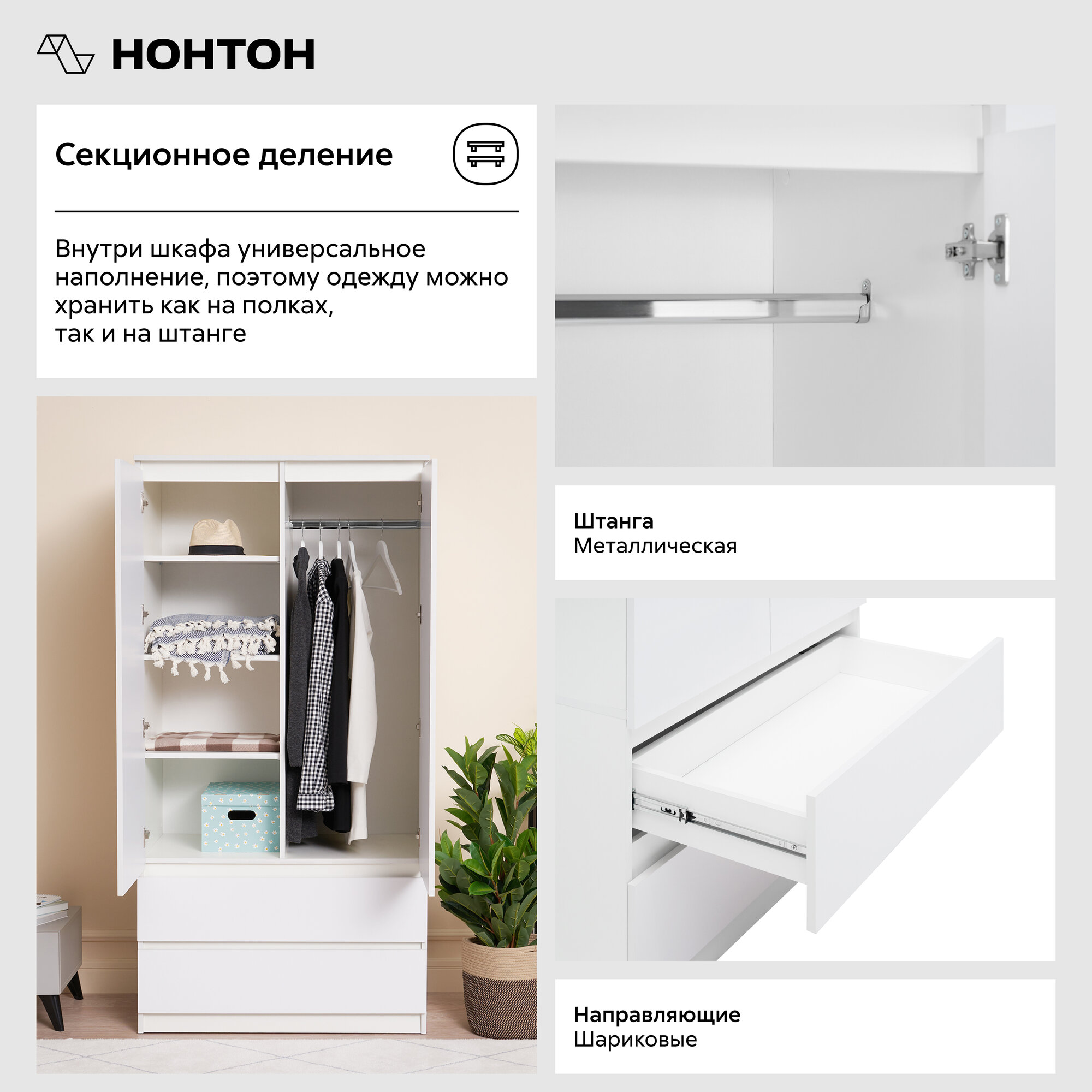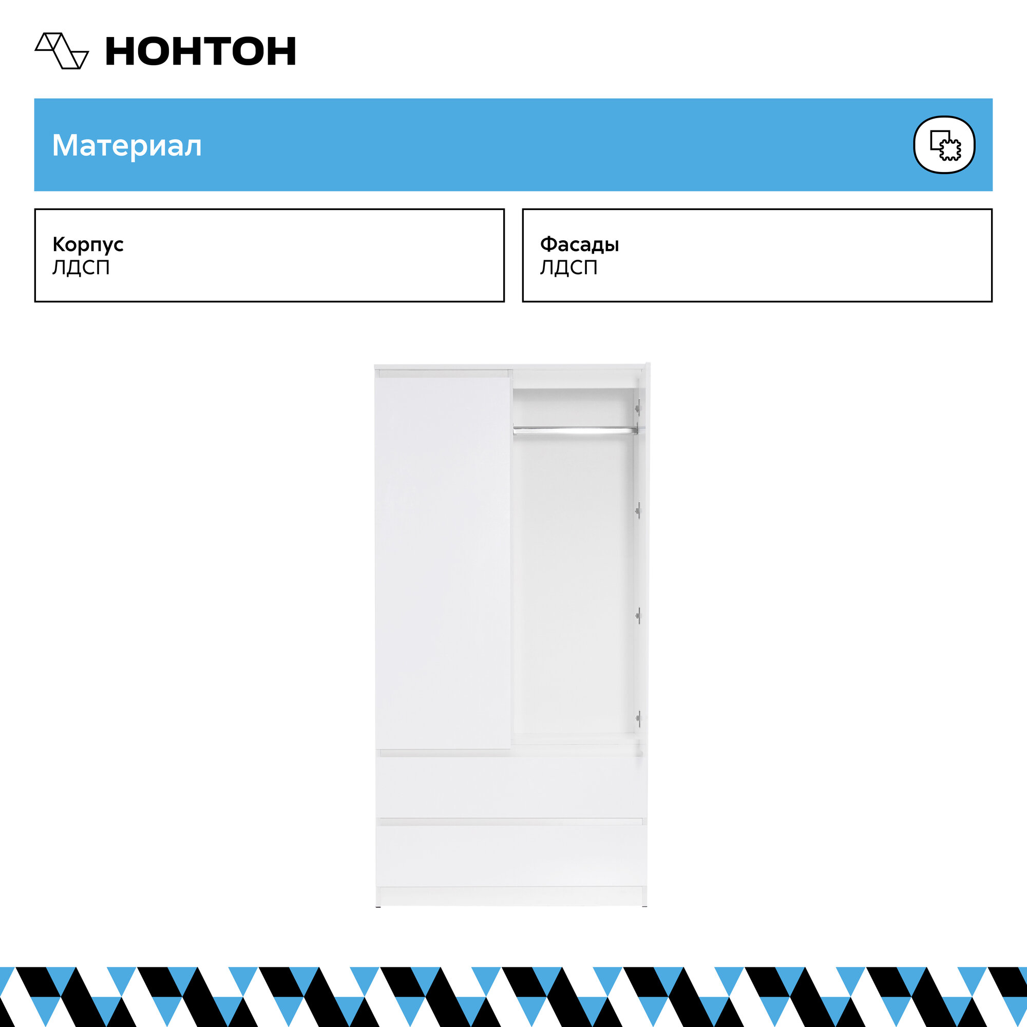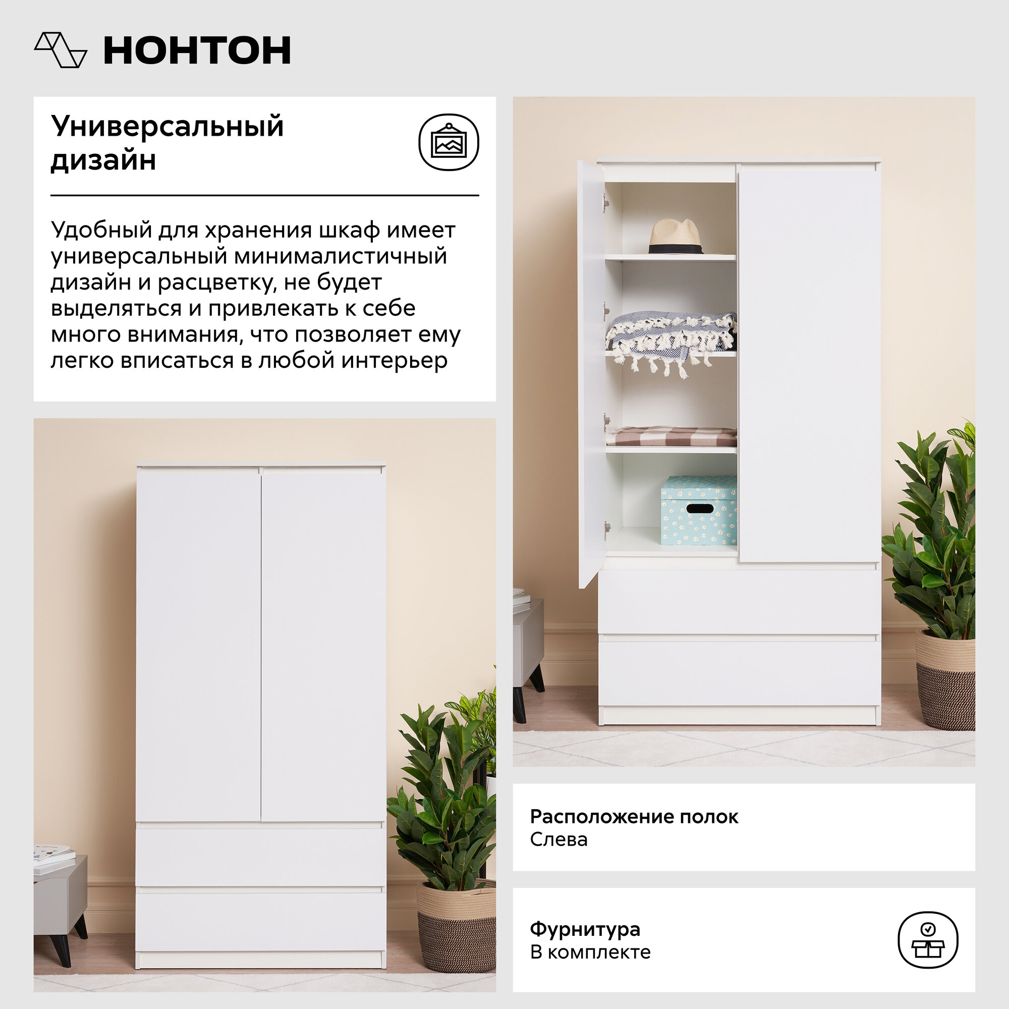 Шкаф для одежды распашной Нонтон Луас, 120 см, 7 полок и штанга, белый глянец