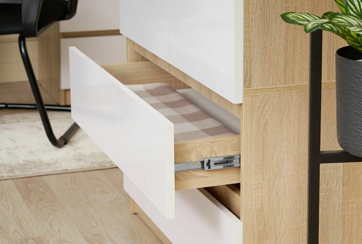 Шкаф для одежды с ящиками Нонтон Челси, дуб сонома / белый глянец, 90 см