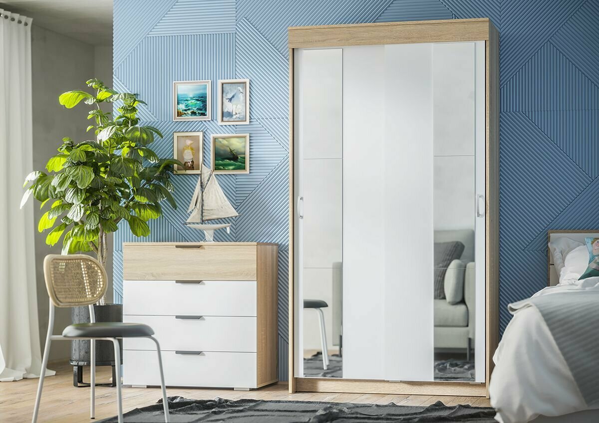Шкаф-купе для одежды Нонтон Бассо, 2 зеркала, дуб сонома / белый 100 см