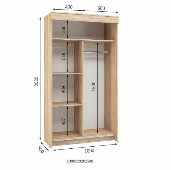 Шкаф-купе Бася/Бассо Дуб Сонома/Белый, ЛДСП , полками, штангой, для прихожей, спальни, гостиной, 1000х500х2020, интерьер центр