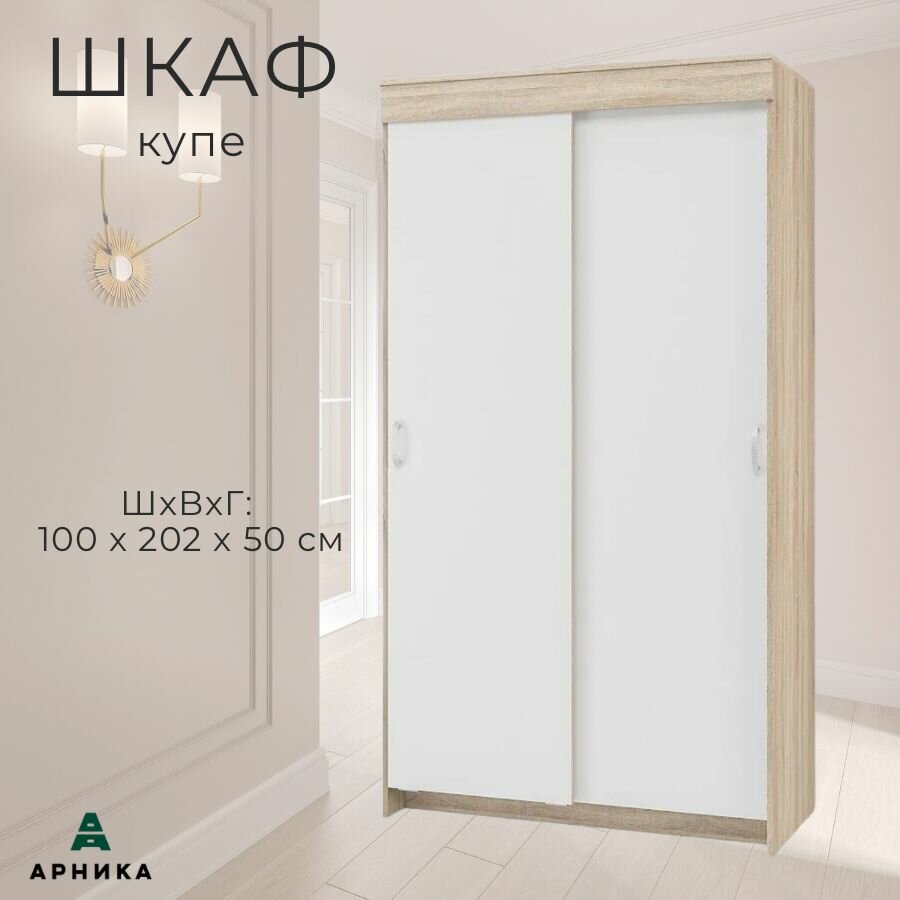 Шкаф-купе Бася/Бассо Дуб Сонома/Белый, ЛДСП , полками, штангой, для прихожей, спальни, гостиной, 1000х500х2020, интерьер центр