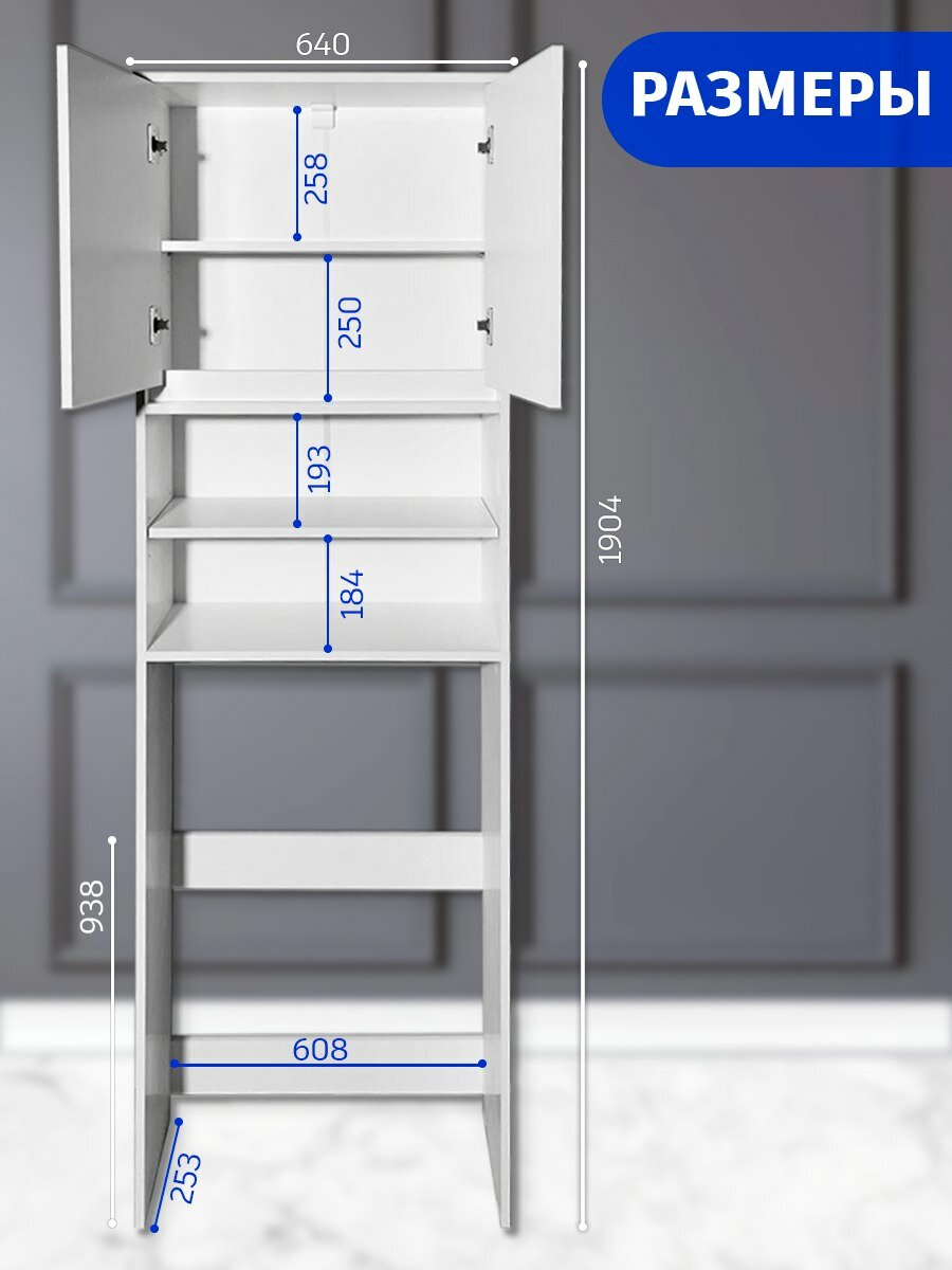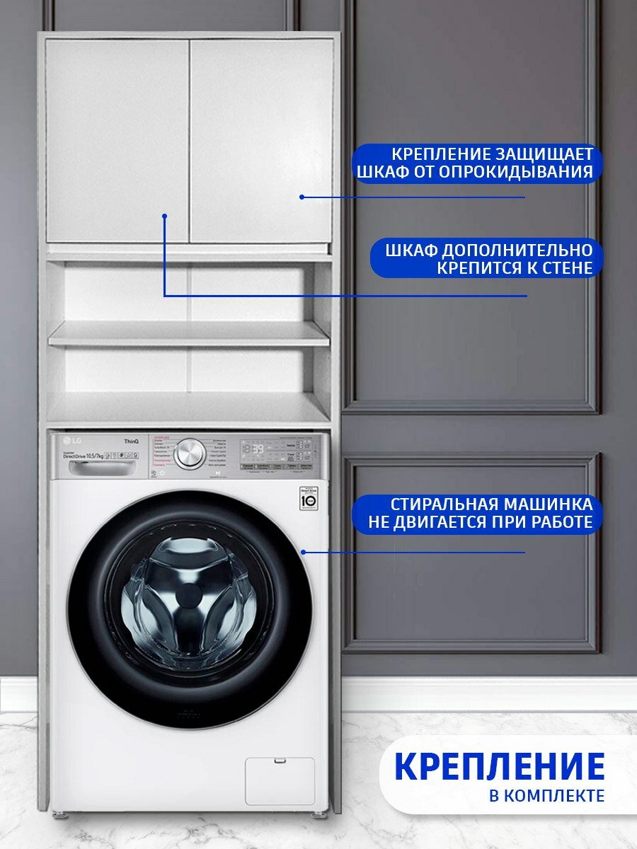 Шкаф-пенал Good Home над стиральной машиной, напольный, белый, 3 полки, размеры 64х25х190 интересное: