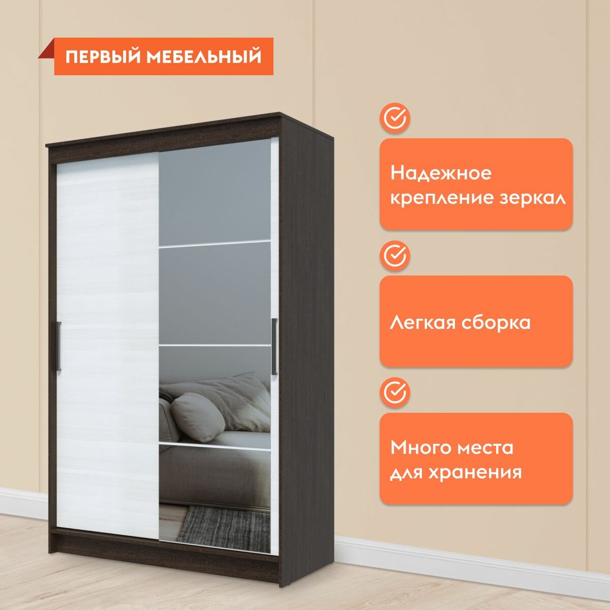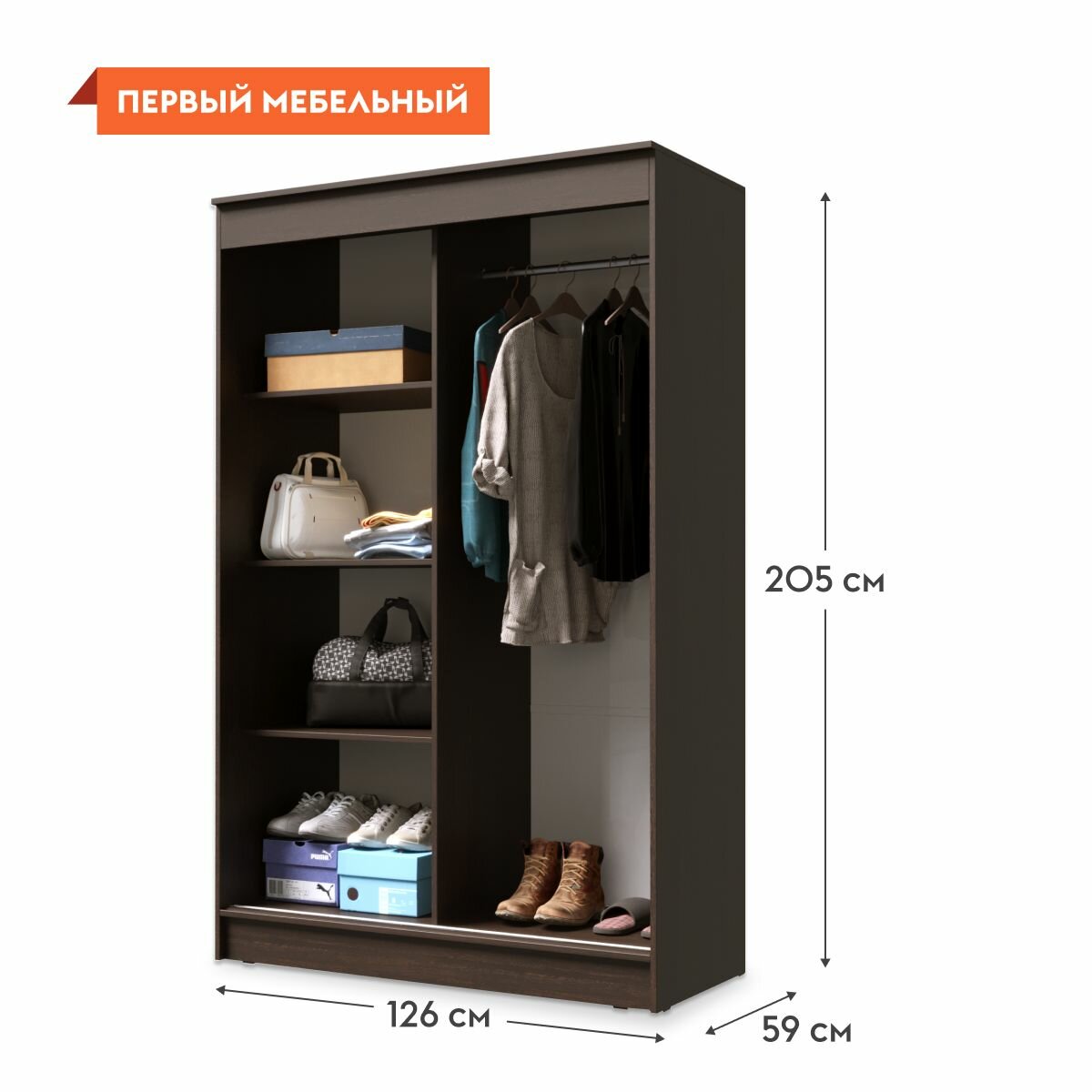 Купить Первый Мебельный Шкаф-купе для одежды Сонет 4 двухдверный, с зеркалом, с полками, 126х59х200 см, Венге / Лоредо