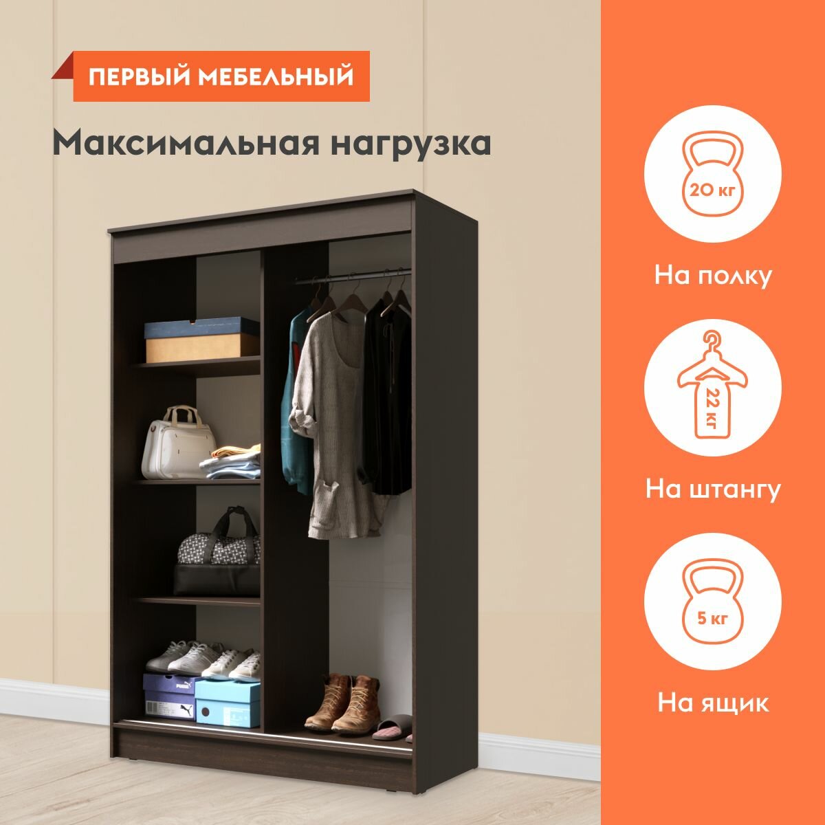 СохранитьПервый Мебельный Шкаф-купе для одежды Сонет 4 двухдверный, с зеркалом, с полками, 126х59х200 см, Венге / Лоредо интересное: