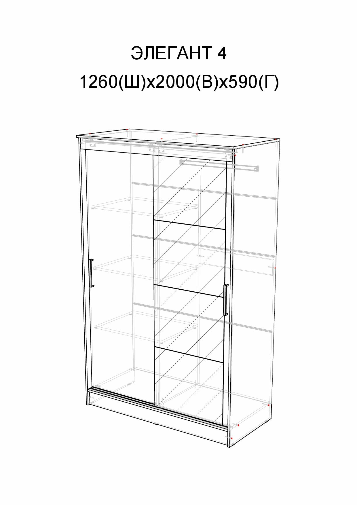Шкаф-купе Элегант-4 (126х59х200 см), ЛДСП Венге/Лоредо