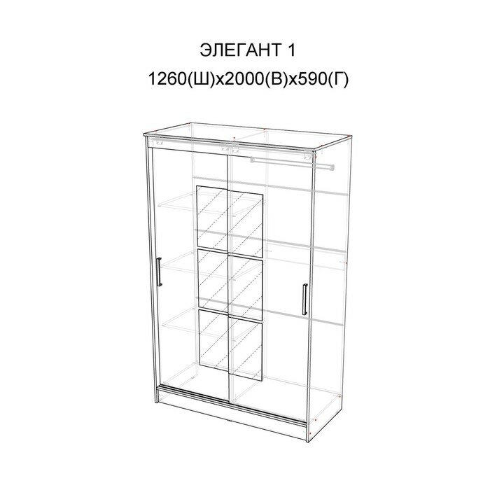 Шкаф-купе Элегант 1 Белый гладкий, ЛДСП, с полками, штангой, для спальни, гостиной, 1260х2000х590, ЭРА