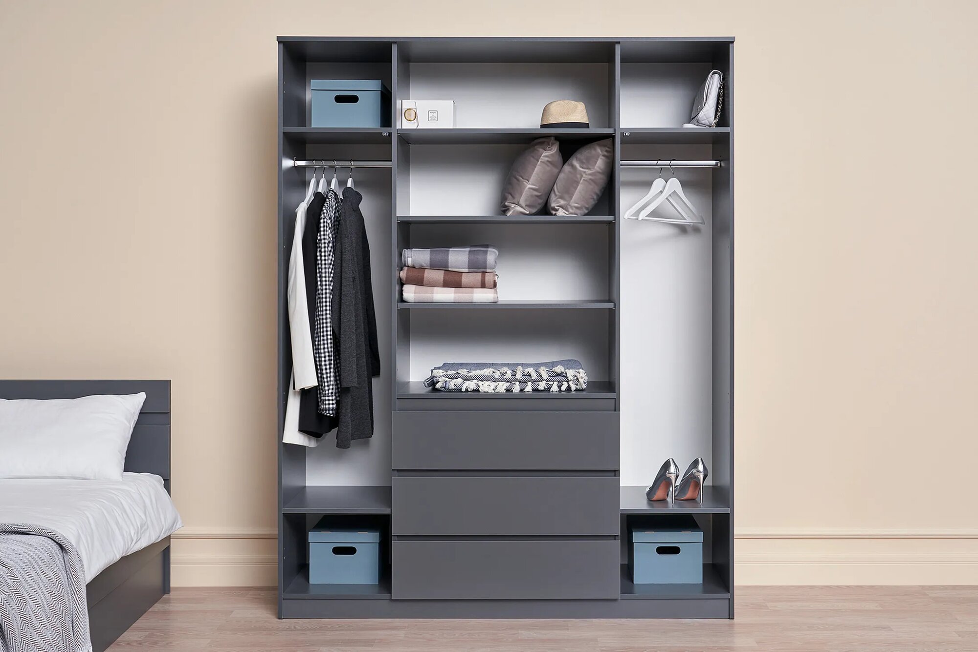 Шкаф 3-х дверный Миф Челси, 3 ящика, графит 120.2х51.4х202.2 см