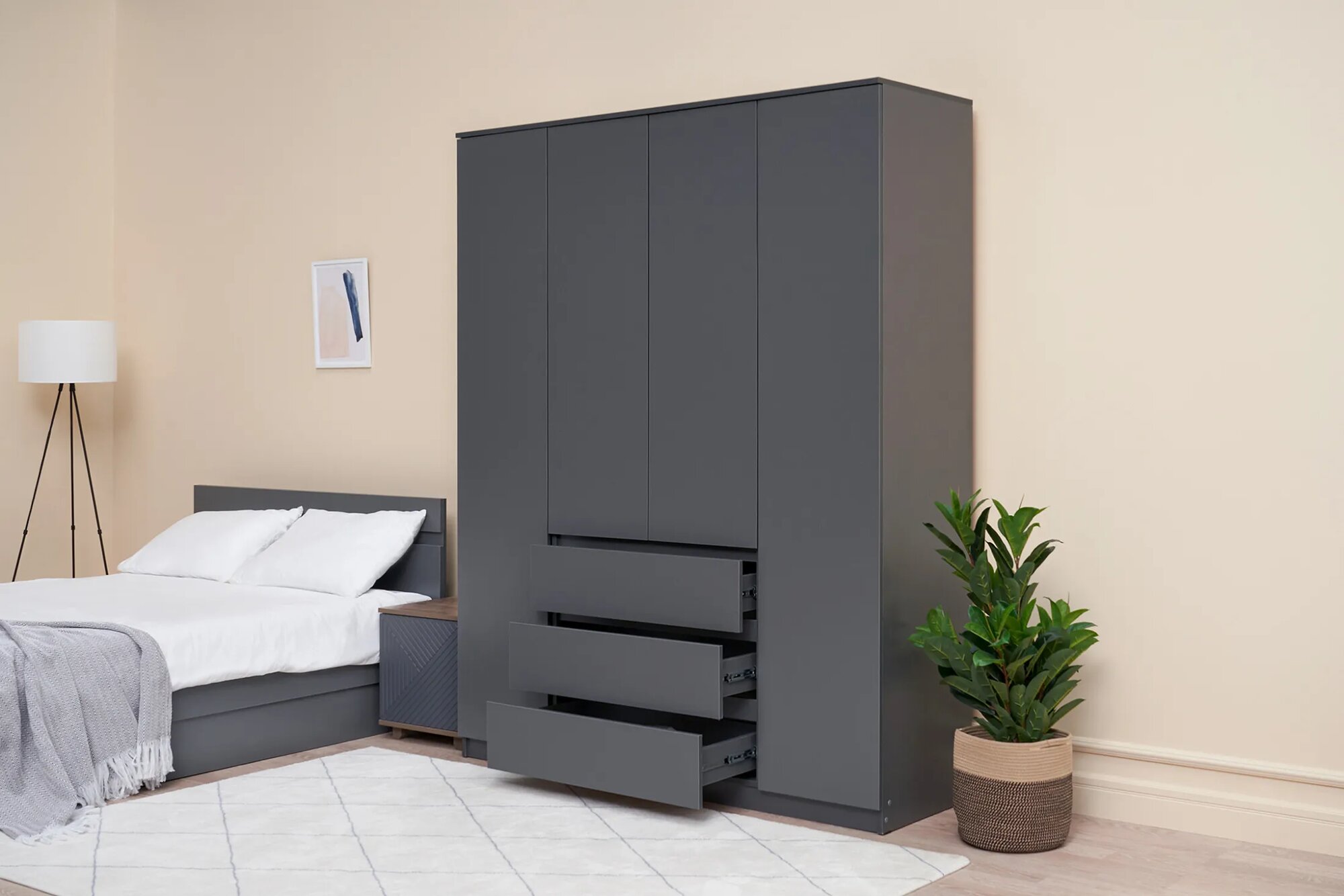 Шкаф 4-х створчатый распашной с ящиками и антресолью 1,6 "Челси" Графит