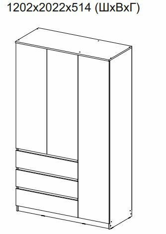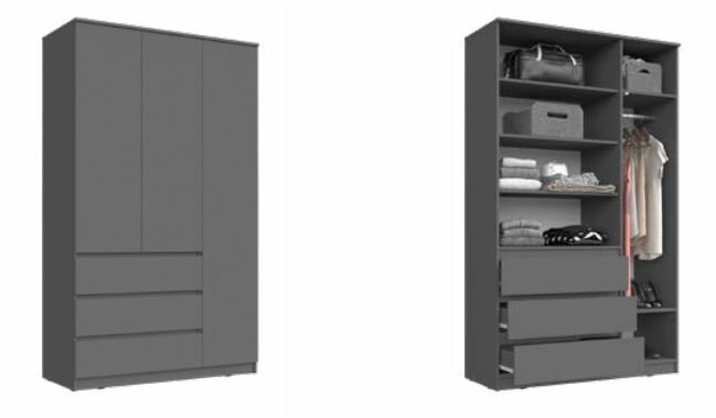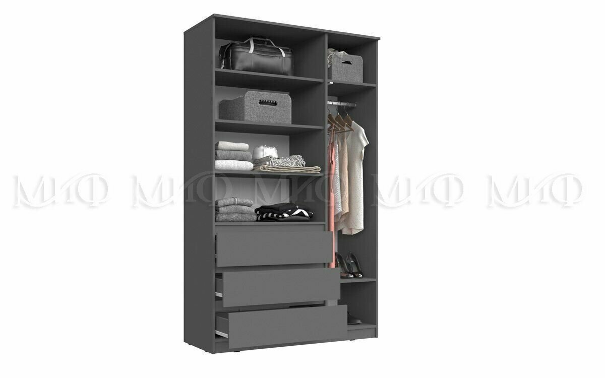 Трехстворчатый шкаф Челси 1200 Миф, цвет Графит/Шкаф распашной с 3-мя ящиками