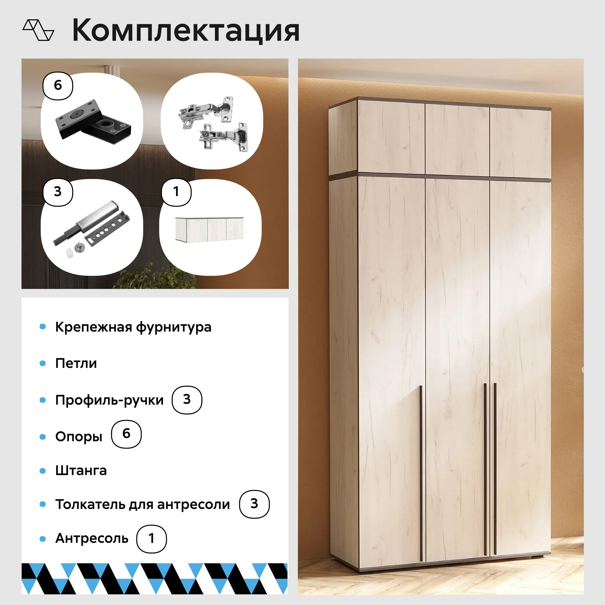 Шкаф 3-х ств. Норд + антресоль 1200х2654х510 мм Дуб крафт