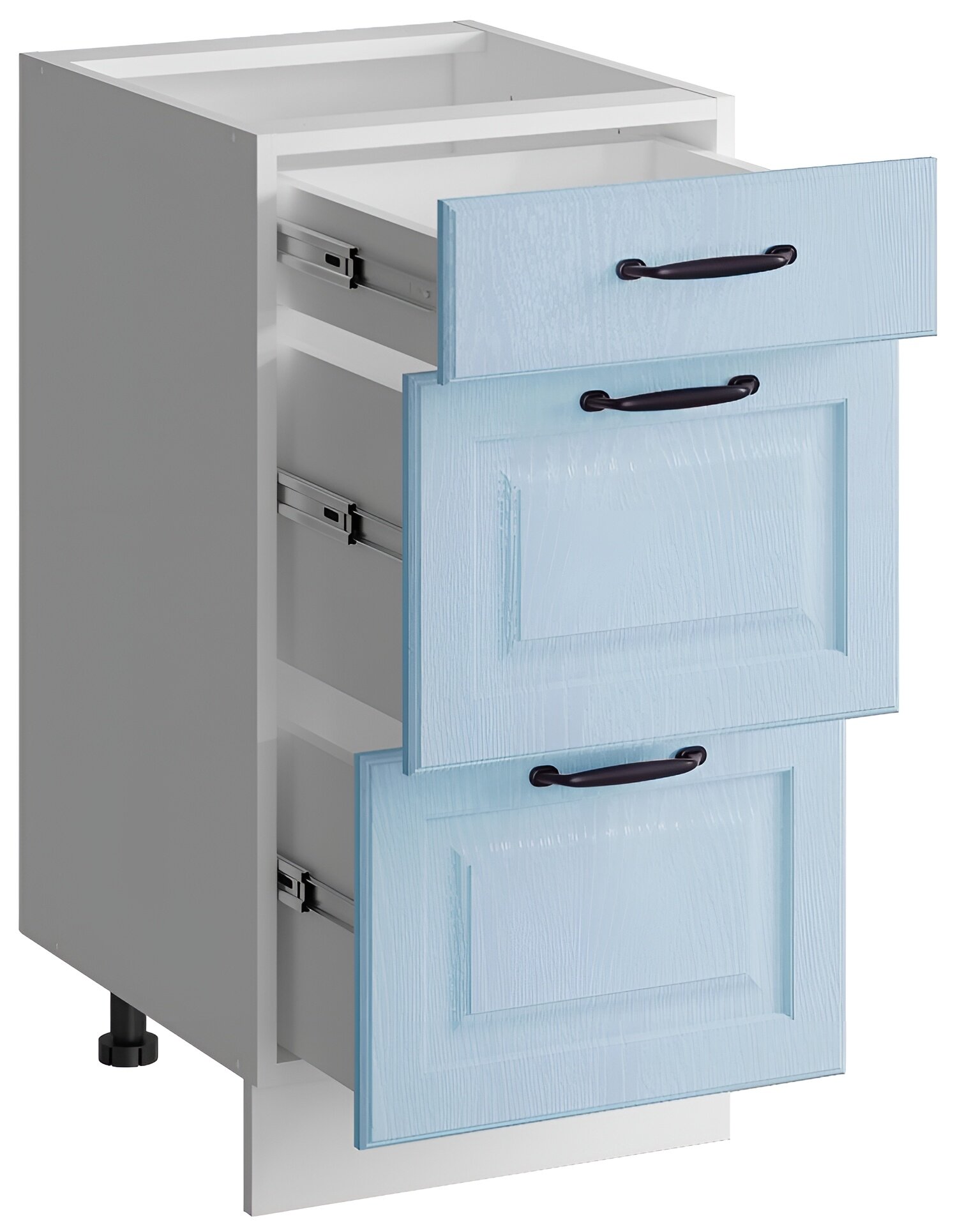 Купить Шкаф кухонный напольный 40 см, 3 ящика, МДФ Лазурное дерево, Ш40*Г50*В82