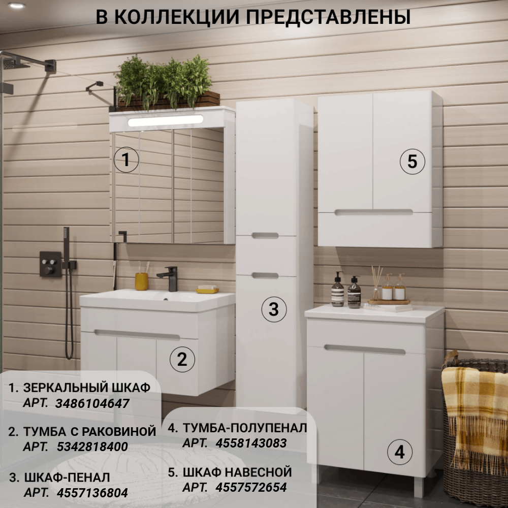 Шкаф в ванную с зеркалом Николь 55, с подсветкой, левый, белый