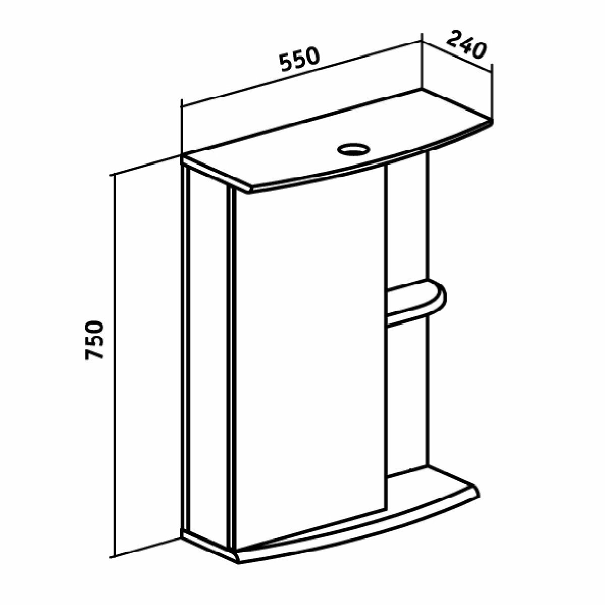 Шкаф в ванную с зеркалом Авила 60, с подсветкой, правый