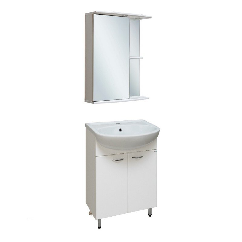 Шкаф в ванную с зеркалом Линда 60, с подсветкой, правый, белый