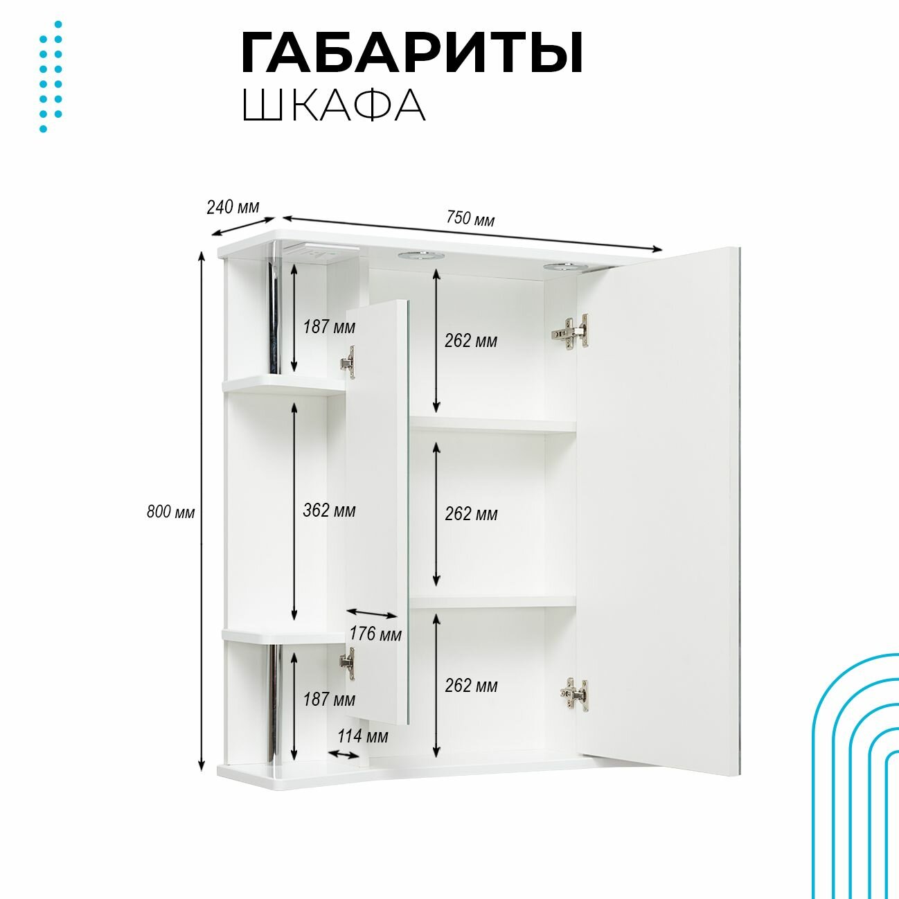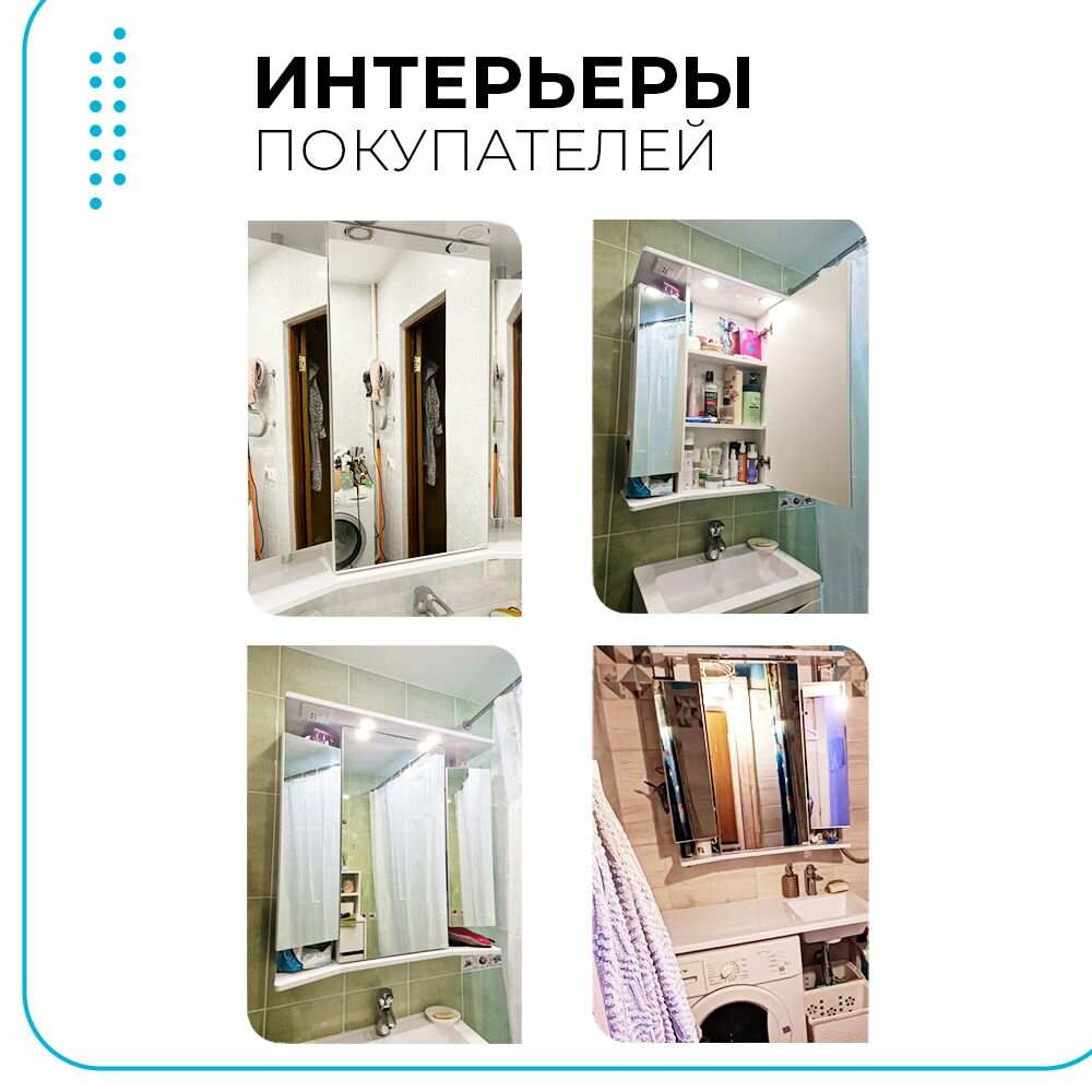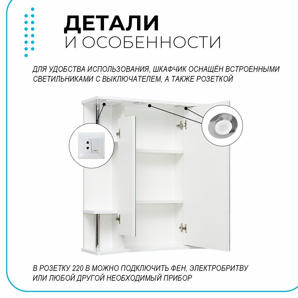 Шкаф в ванную с зеркалом Линда 60, с подсветкой, правый, белый