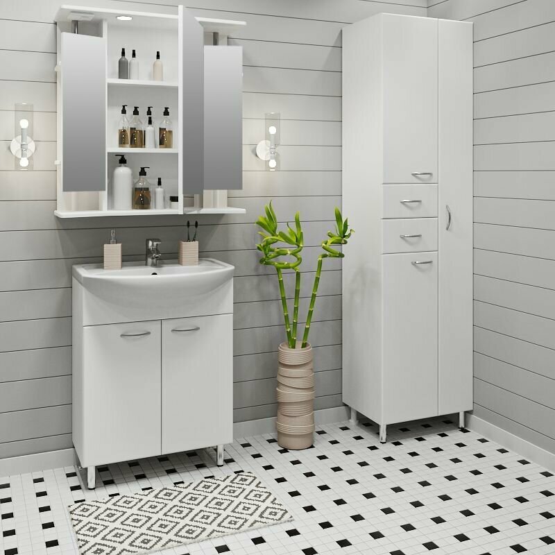 Шкаф в ванную с зеркалом Кипарис 50, с подсветкой, белый