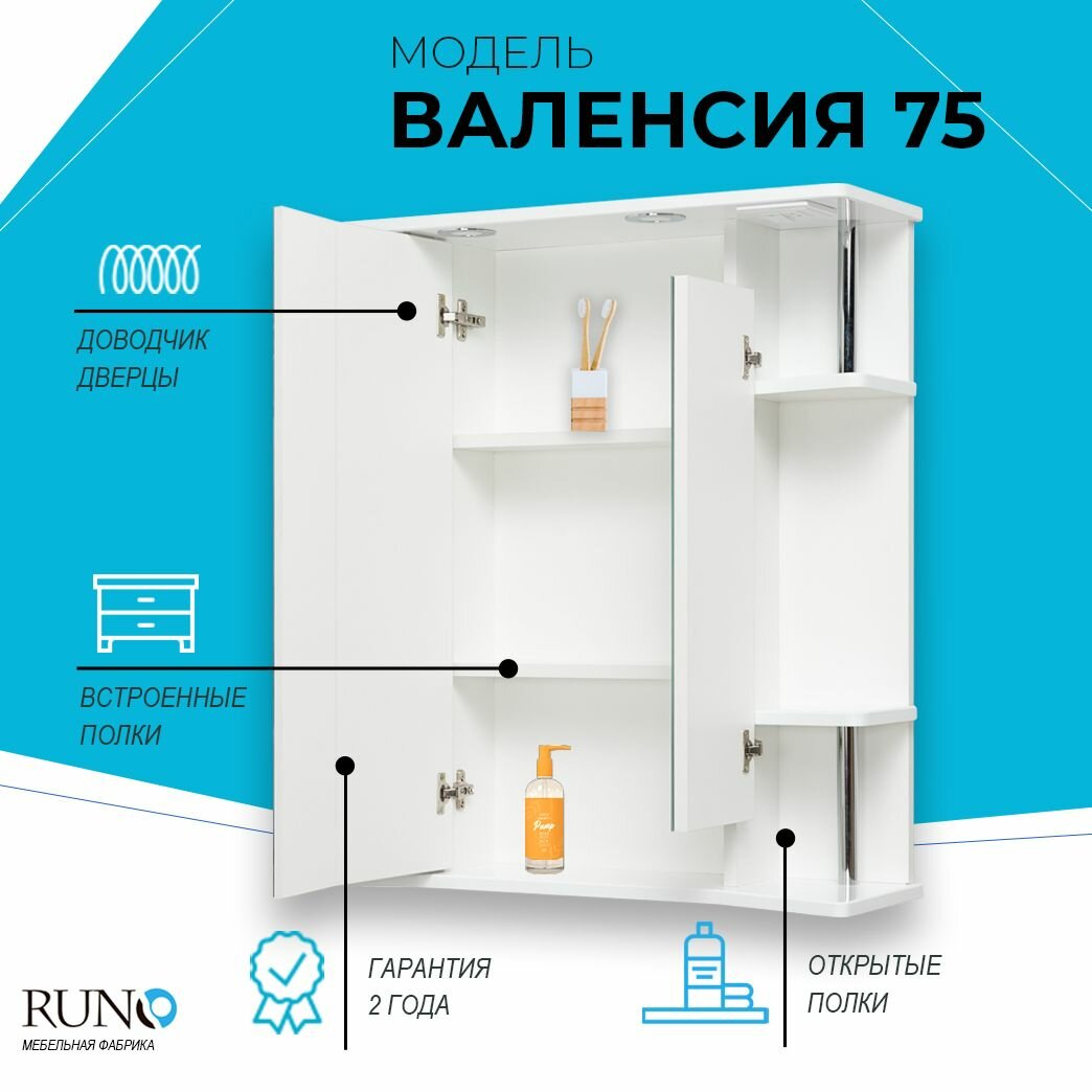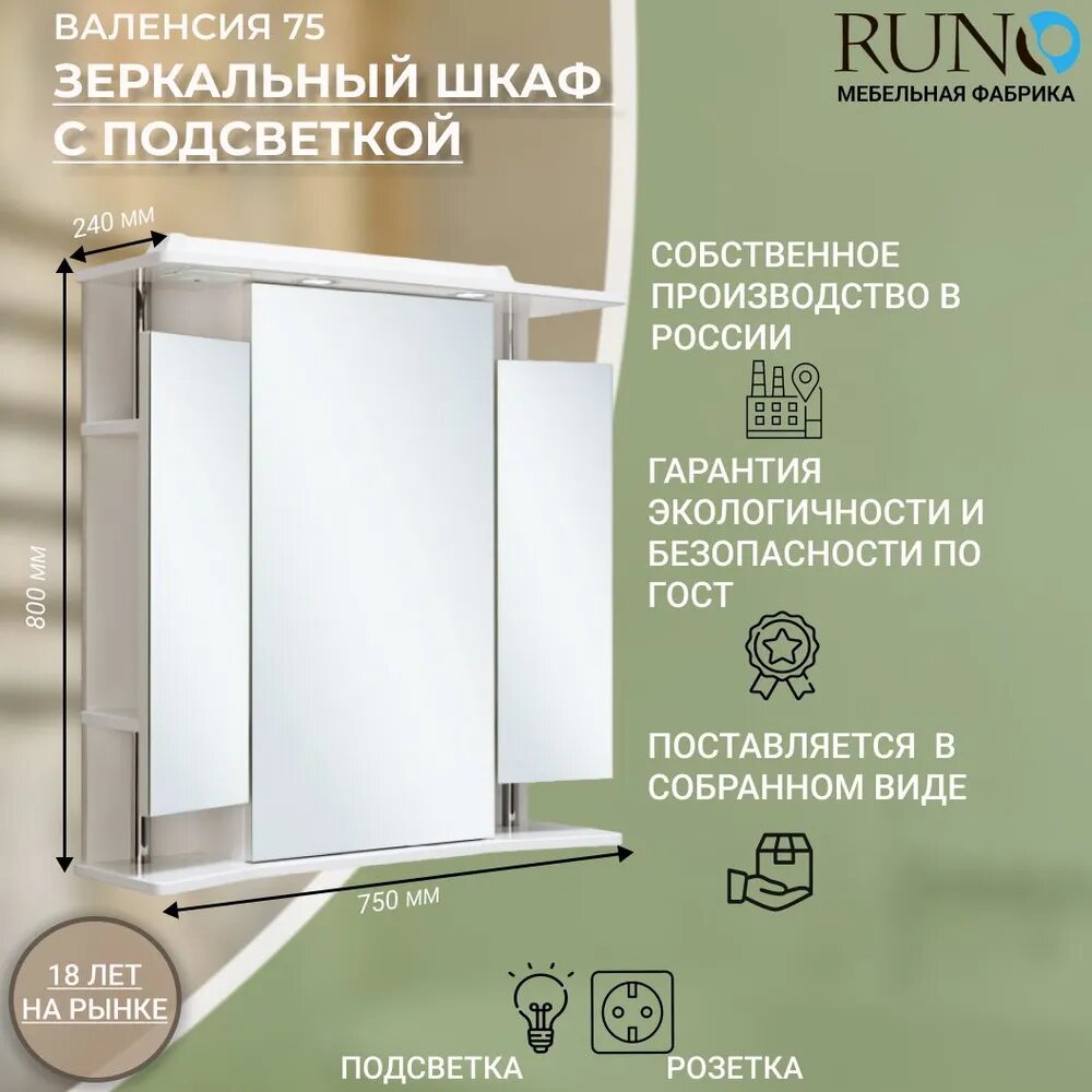 Купить Зеркальный шкаф Runo Валенсия 75 00000000019 с подсветкой Белый
