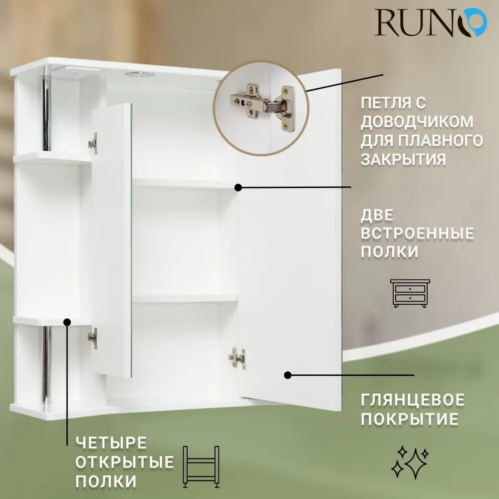 Зеркальный шкаф Runo Линда 60 R 00000001082 с подсветкой Белый