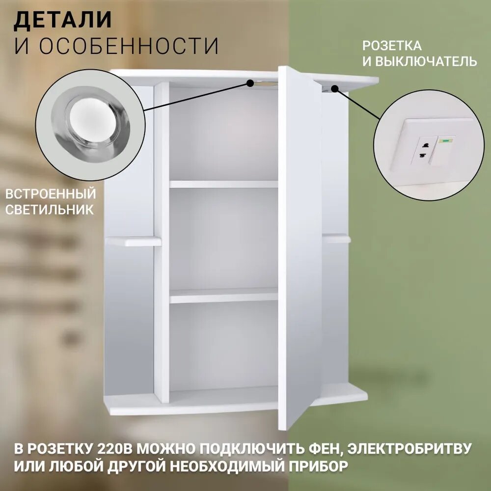 Шкаф в ванную с зеркалом Линда 60, с подсветкой, правый, белый