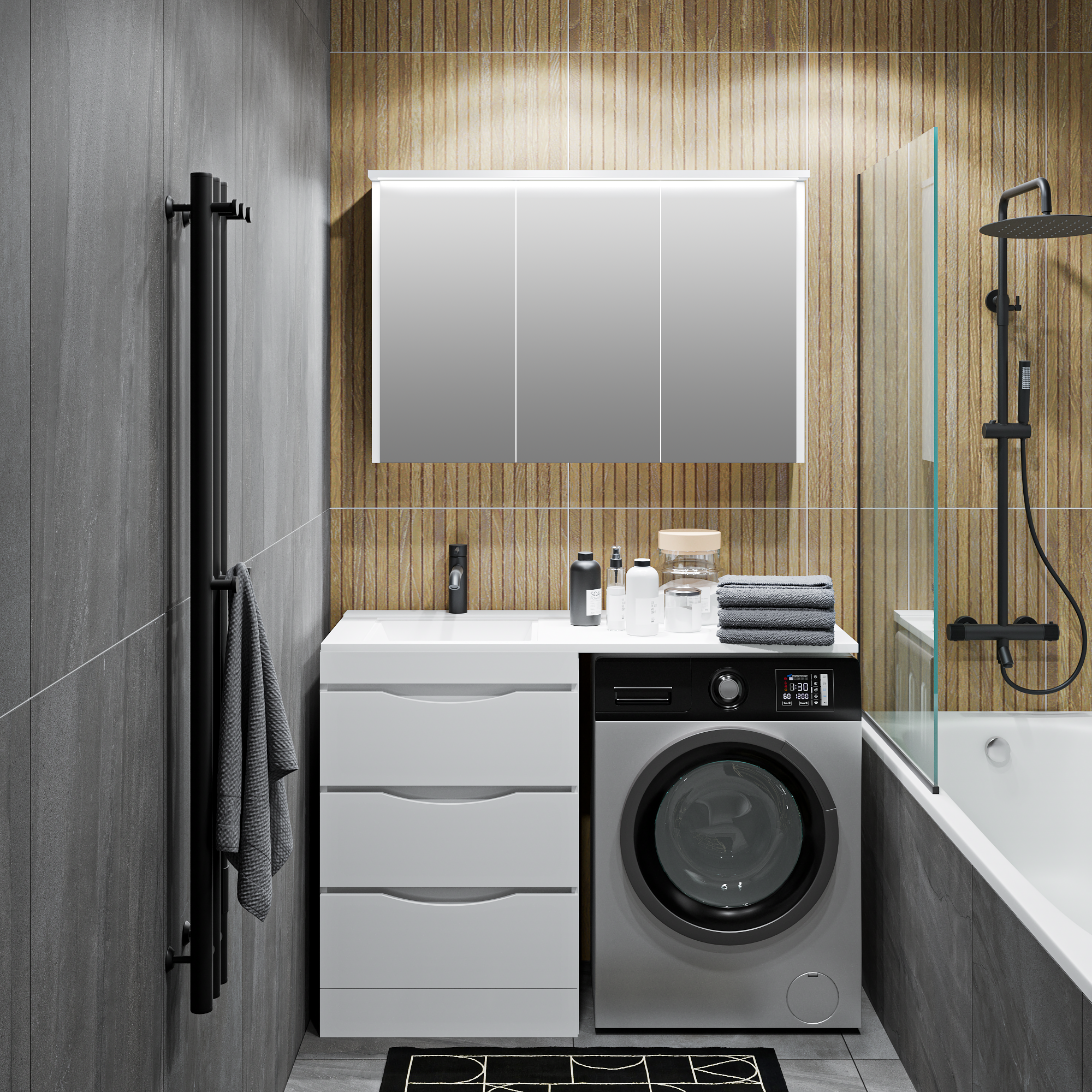 Шкаф в ванную с зеркалом Николь 55, с подсветкой, левый, белый