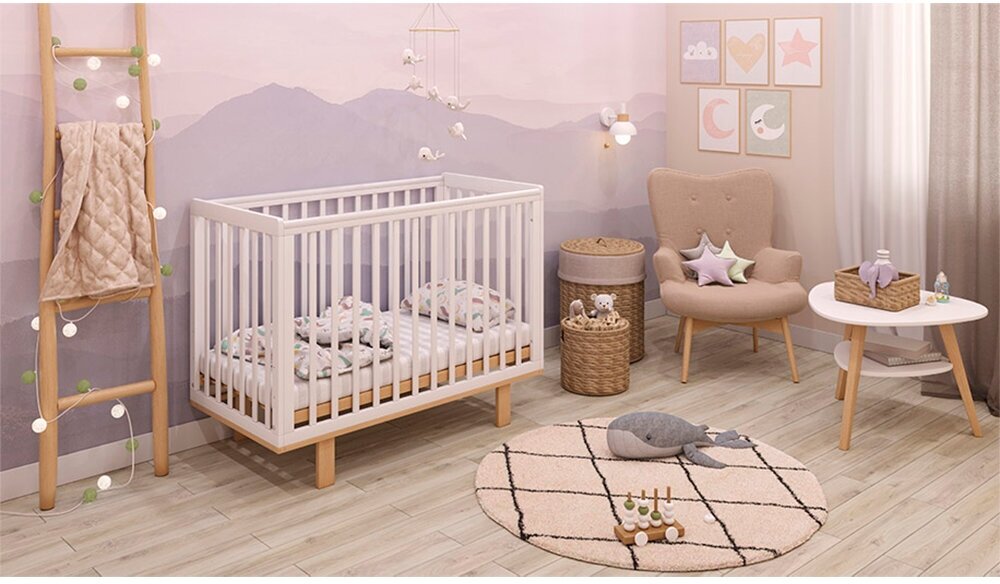 Кроватка детская Polini kids Porto 1300, белый-дуб каменный