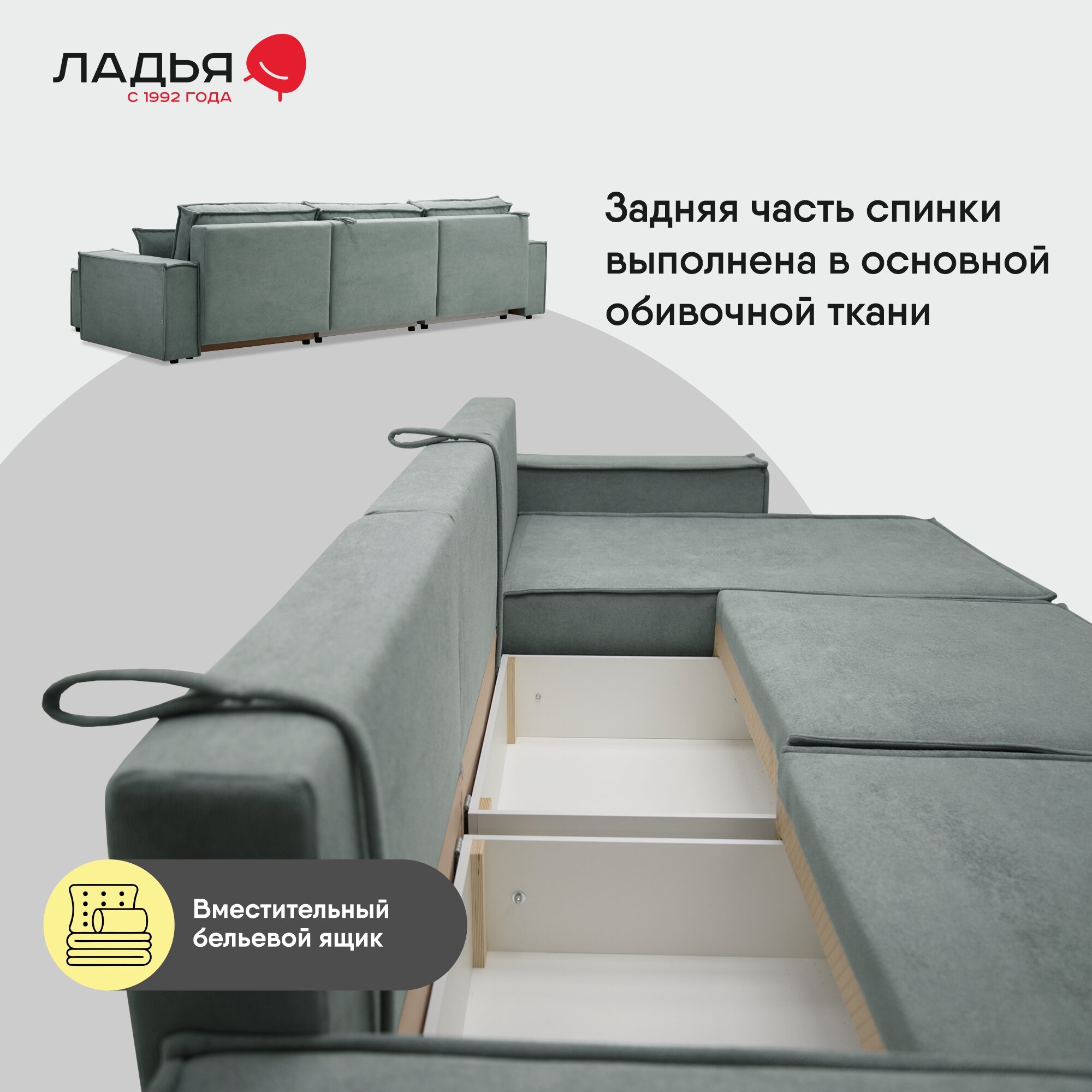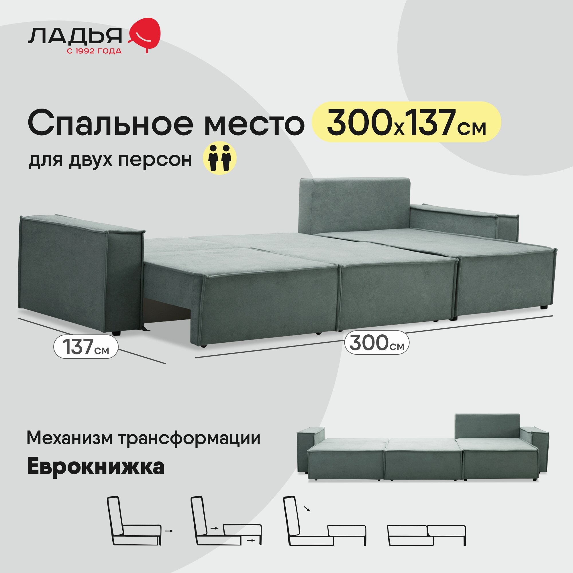 Угловой диван Фабио MAX, размер: 350х154х87см, спальное место: 200х157см, велюр Tatler Ice интересное: