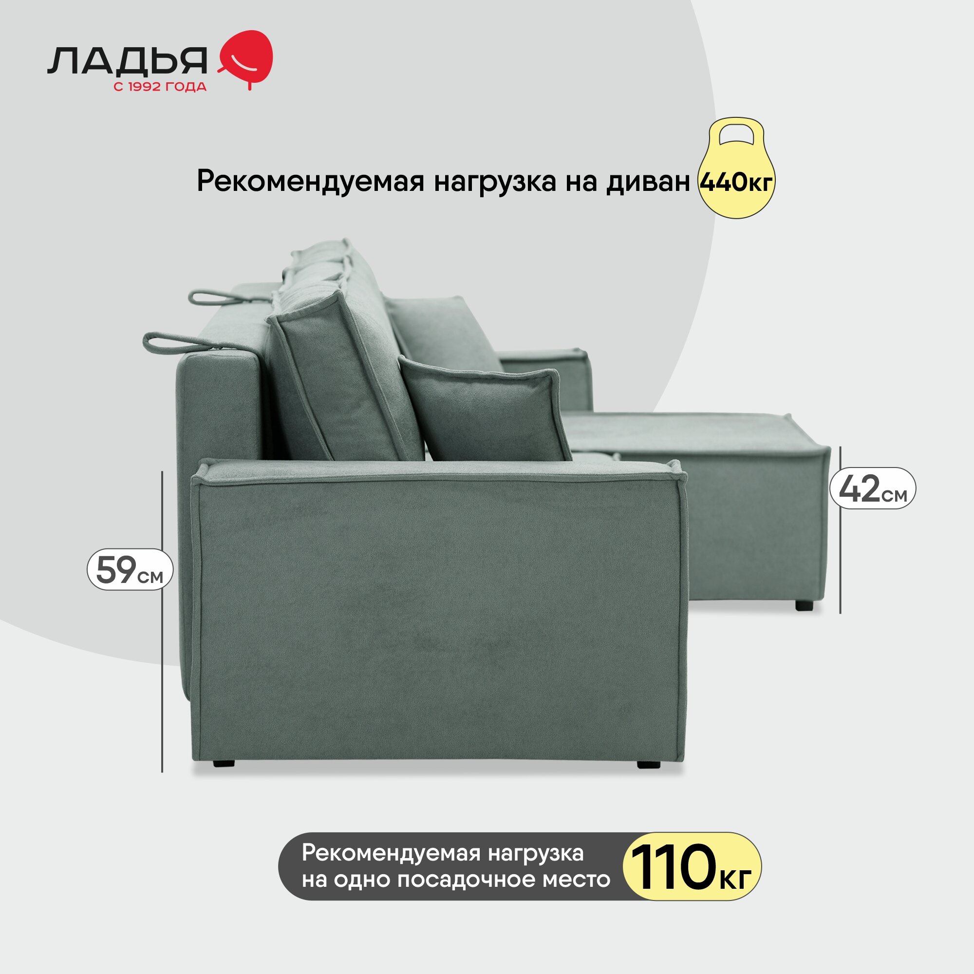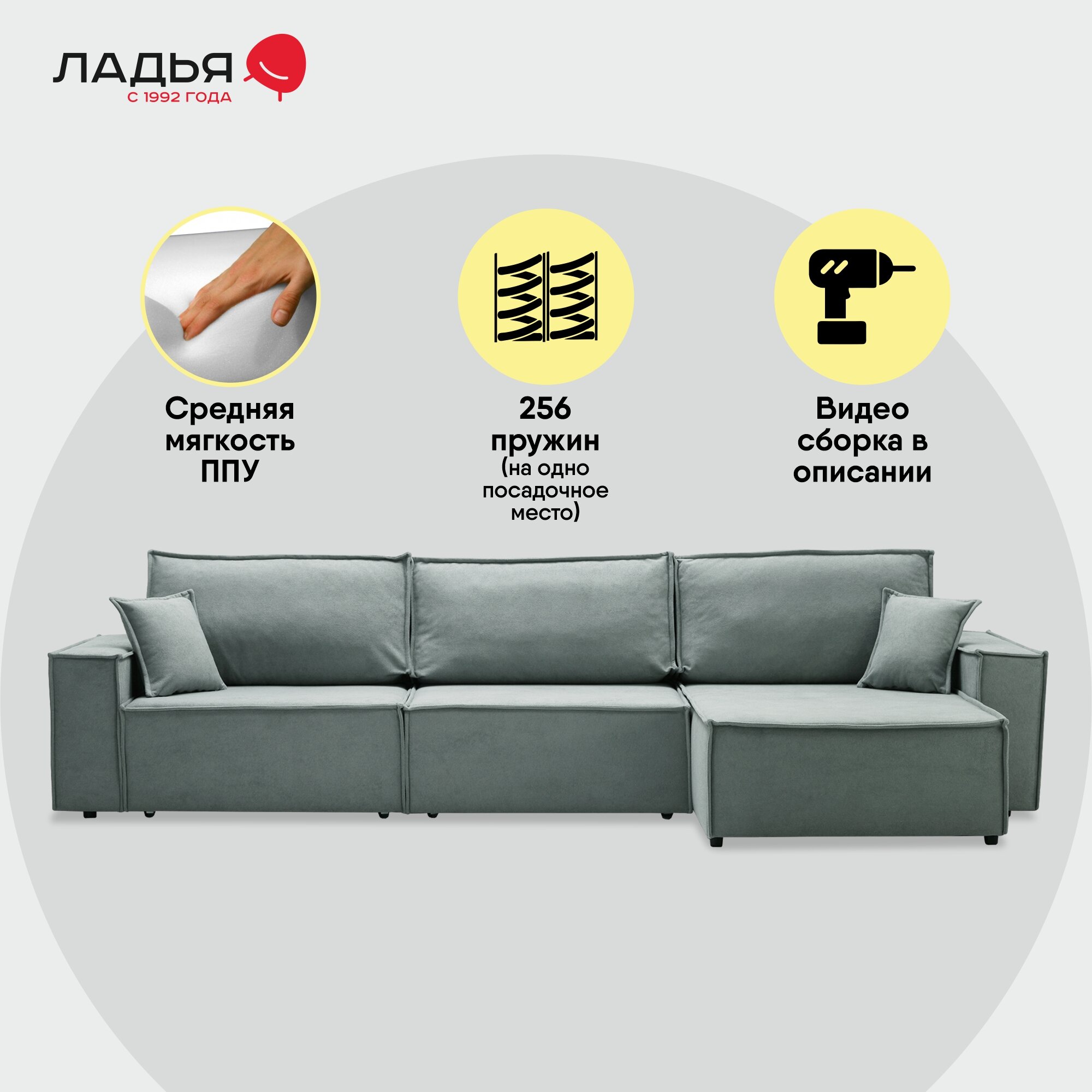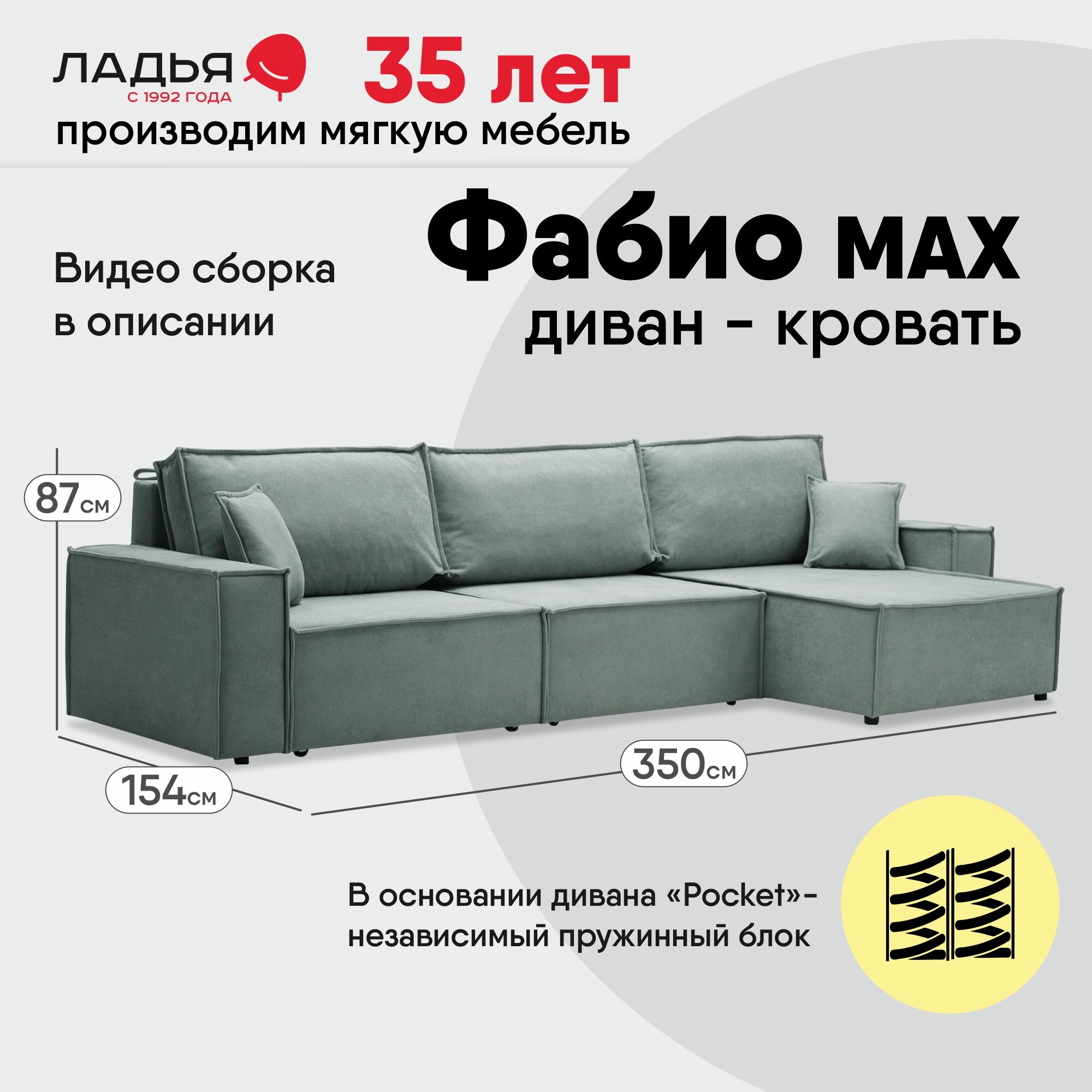 Купить Угловой диван Фабио MAX, размер: 350х154х87см, спальное место: 200х157см, велюр Tatler Ice