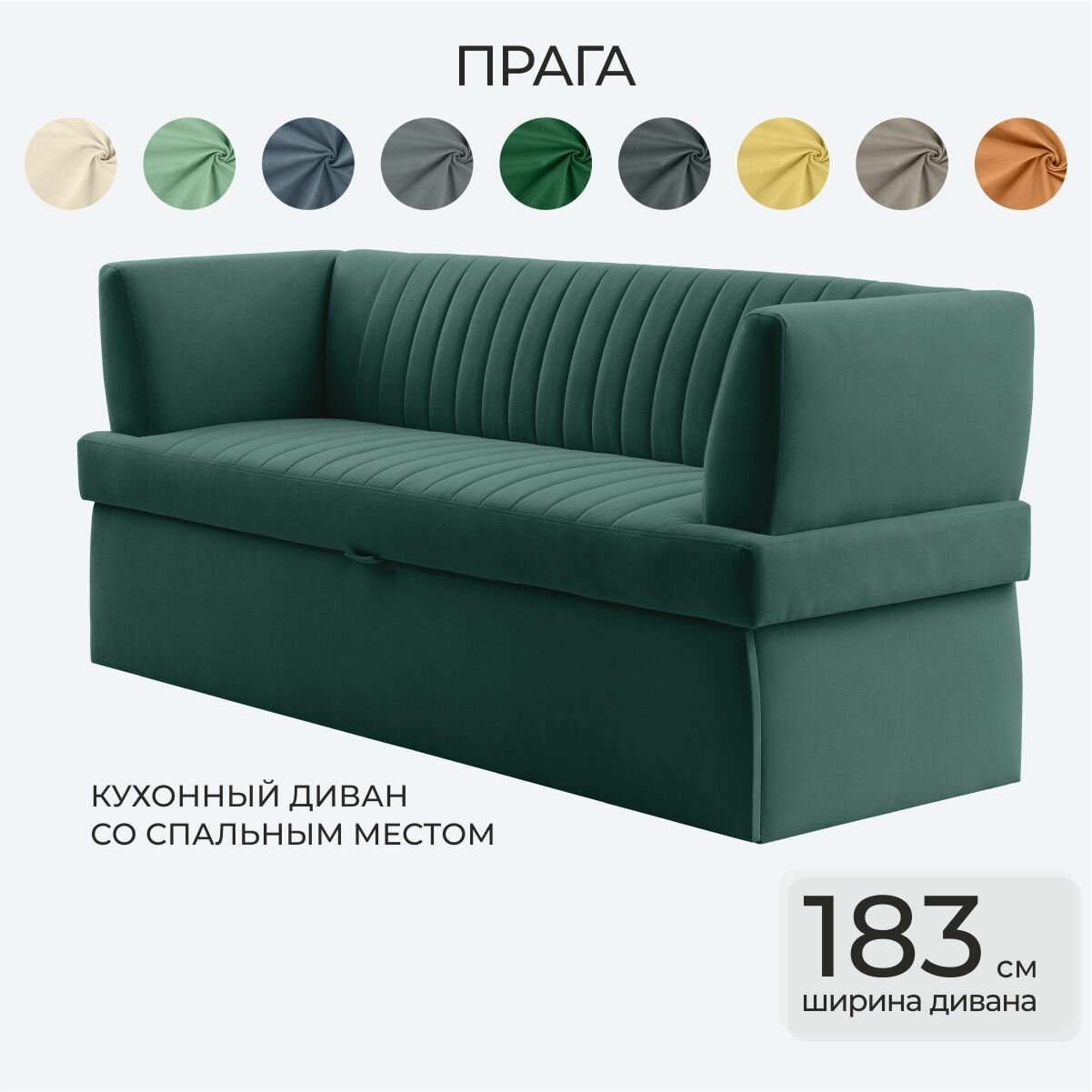 Кухонный диван Прага 183х64х83 см. Мелисса 39, прямой раскладной диван со спальным местом. Темно-Зеленый