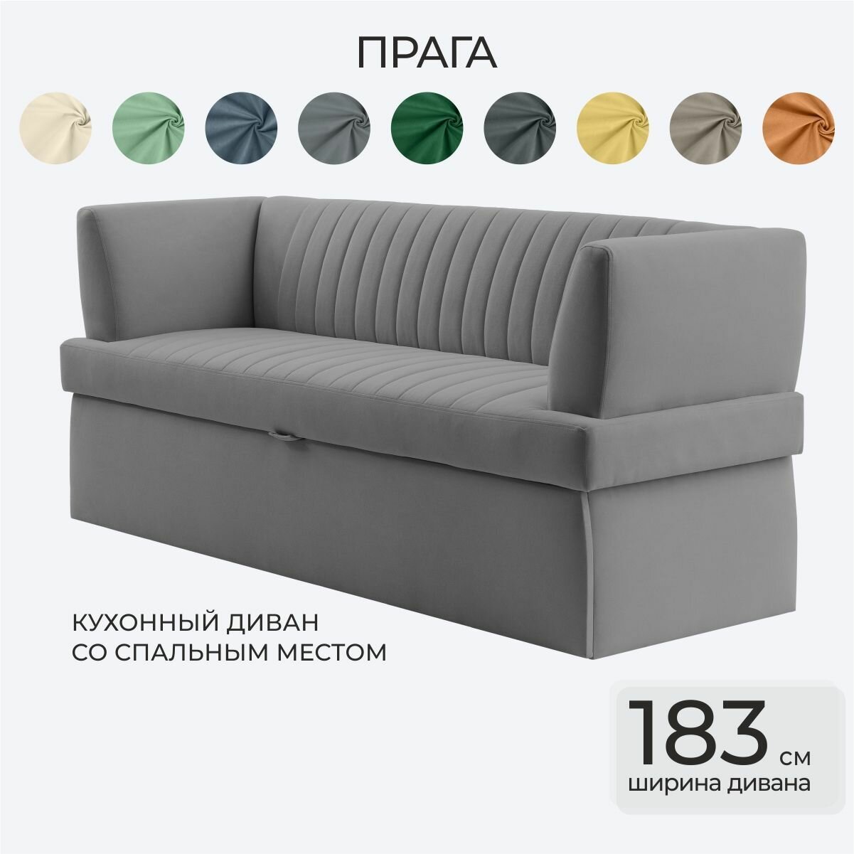 Кухонный диван Прага 183х64х83 см. Мелисса 34, прямой раскладной диван со спальным местом, материал обивки Велюр
