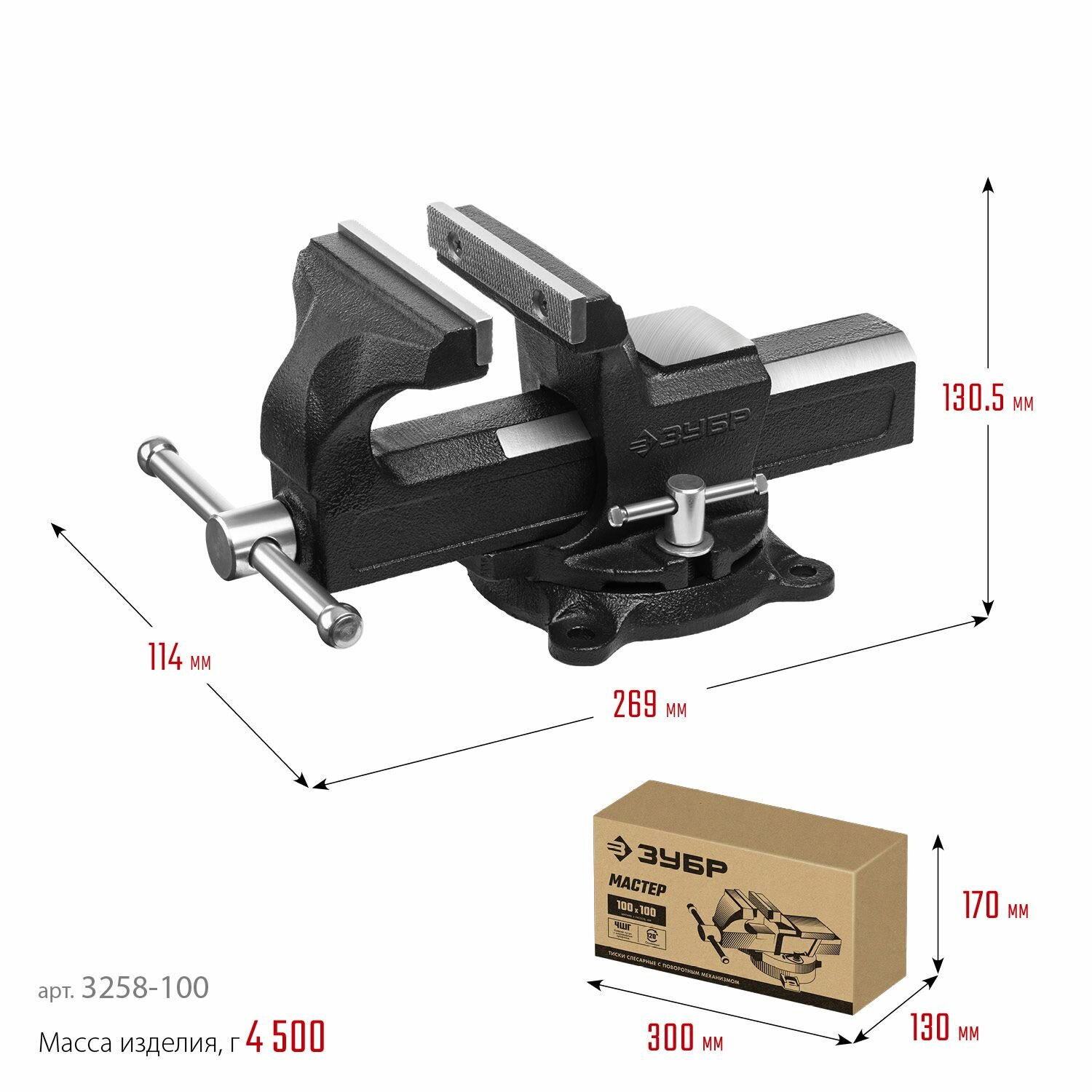 Тиски слесарные поворотные Зубр Мастер 3258-100_z01 100 мм