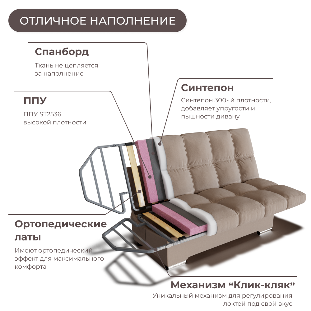 СохранитьДиван кровать раскладной с Ортопедическим основанием, механизм Клик-Кляк. Квест-25 интересное: