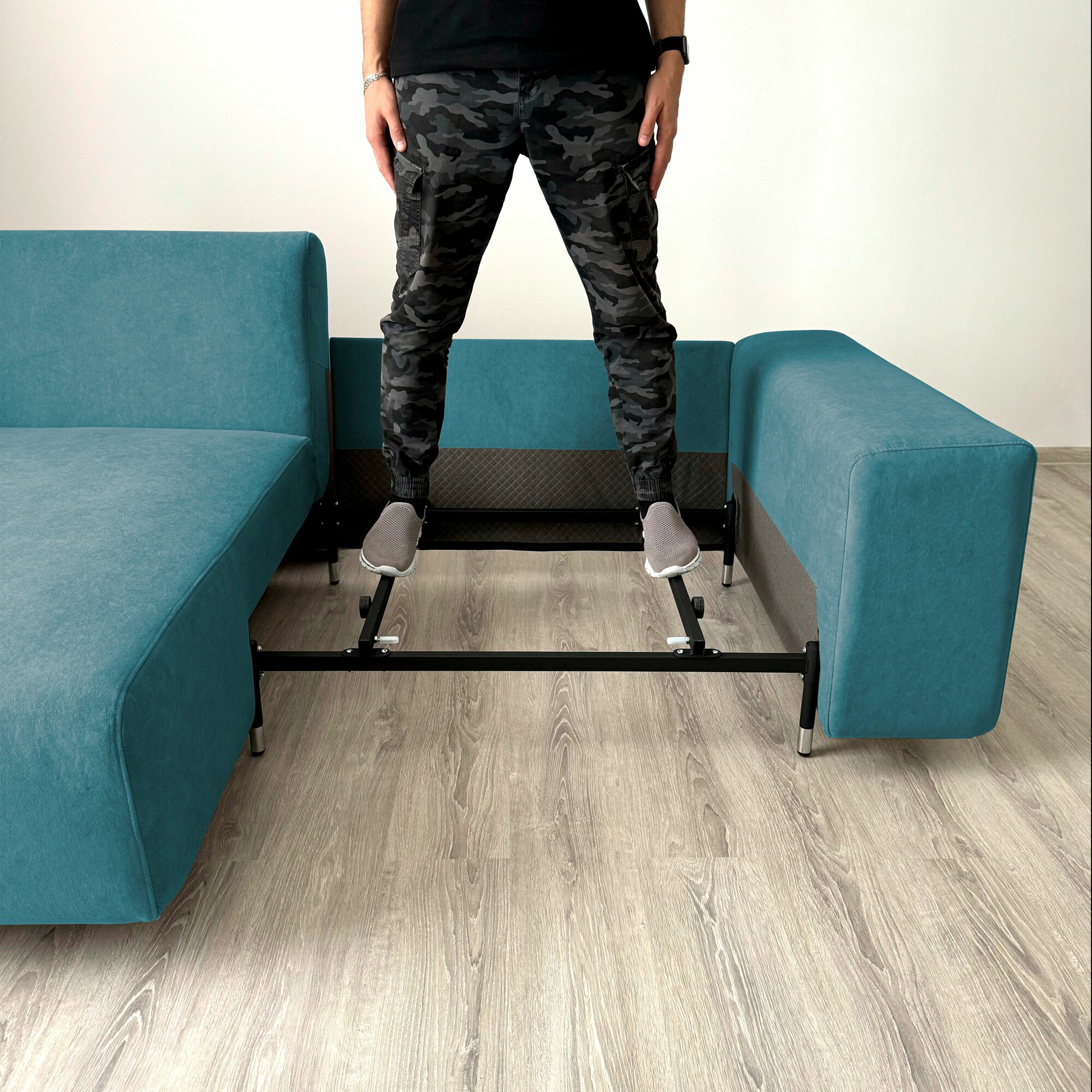 Диван-кровать Redsofa Аурис 260 см аквамарин Ocean. Раскладной угловой диван со съемными чехлами, для дома и офиса.