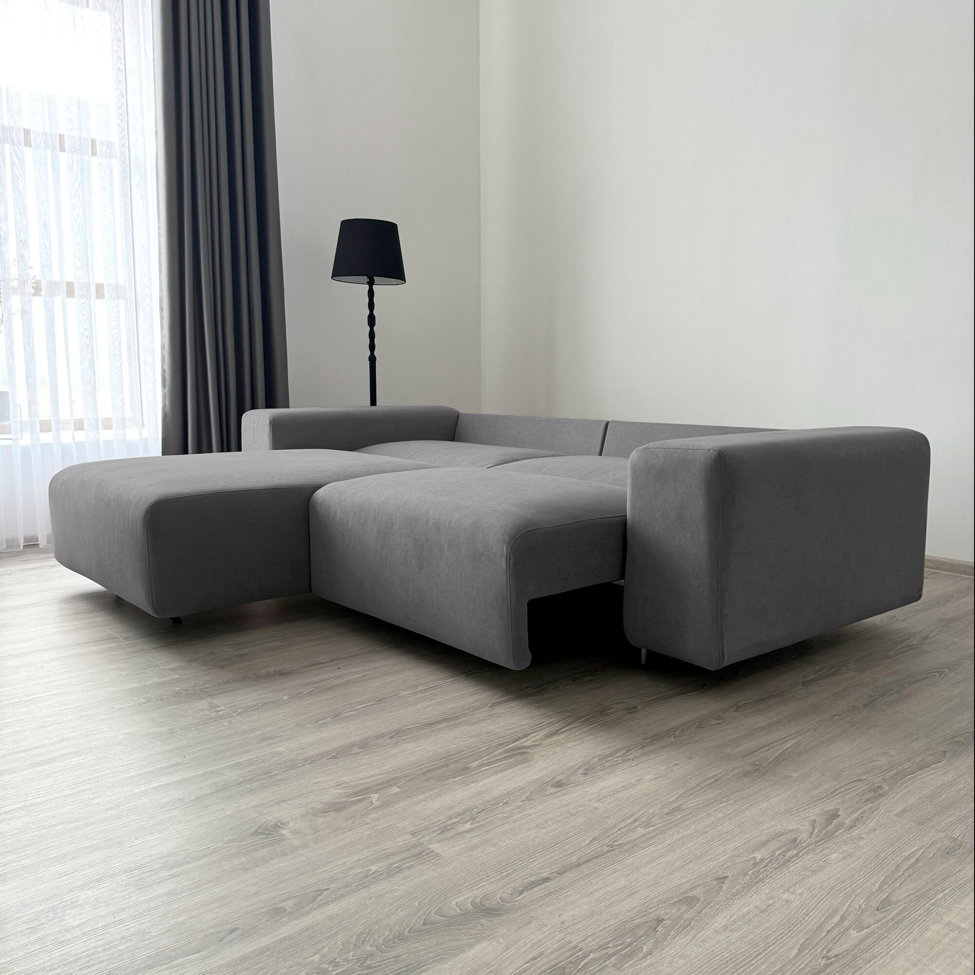 Диван-кровать Redsofa Аурис 260 см серый Teddi. Раскладной угловой диван со съемными чехлами, для дома и офиса.