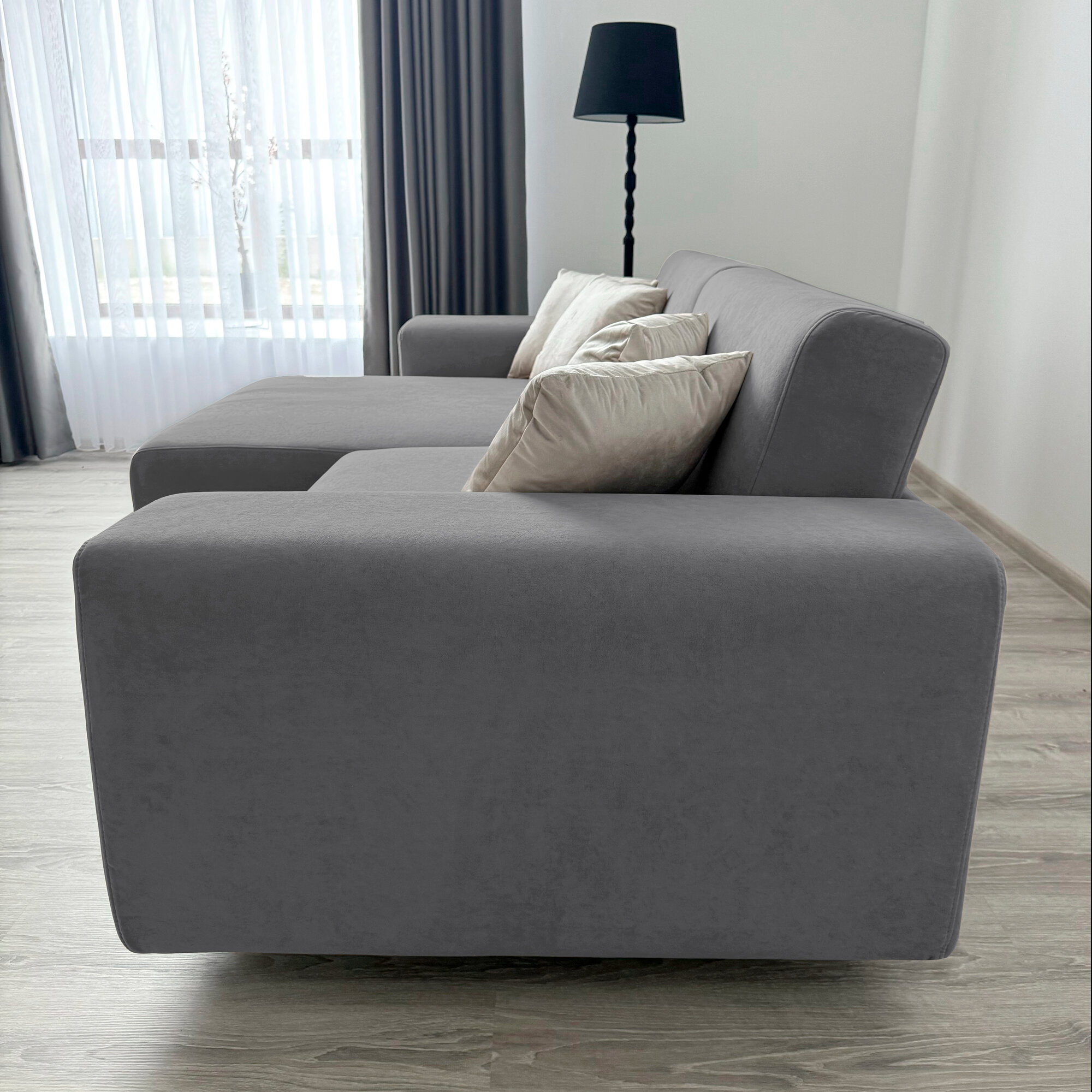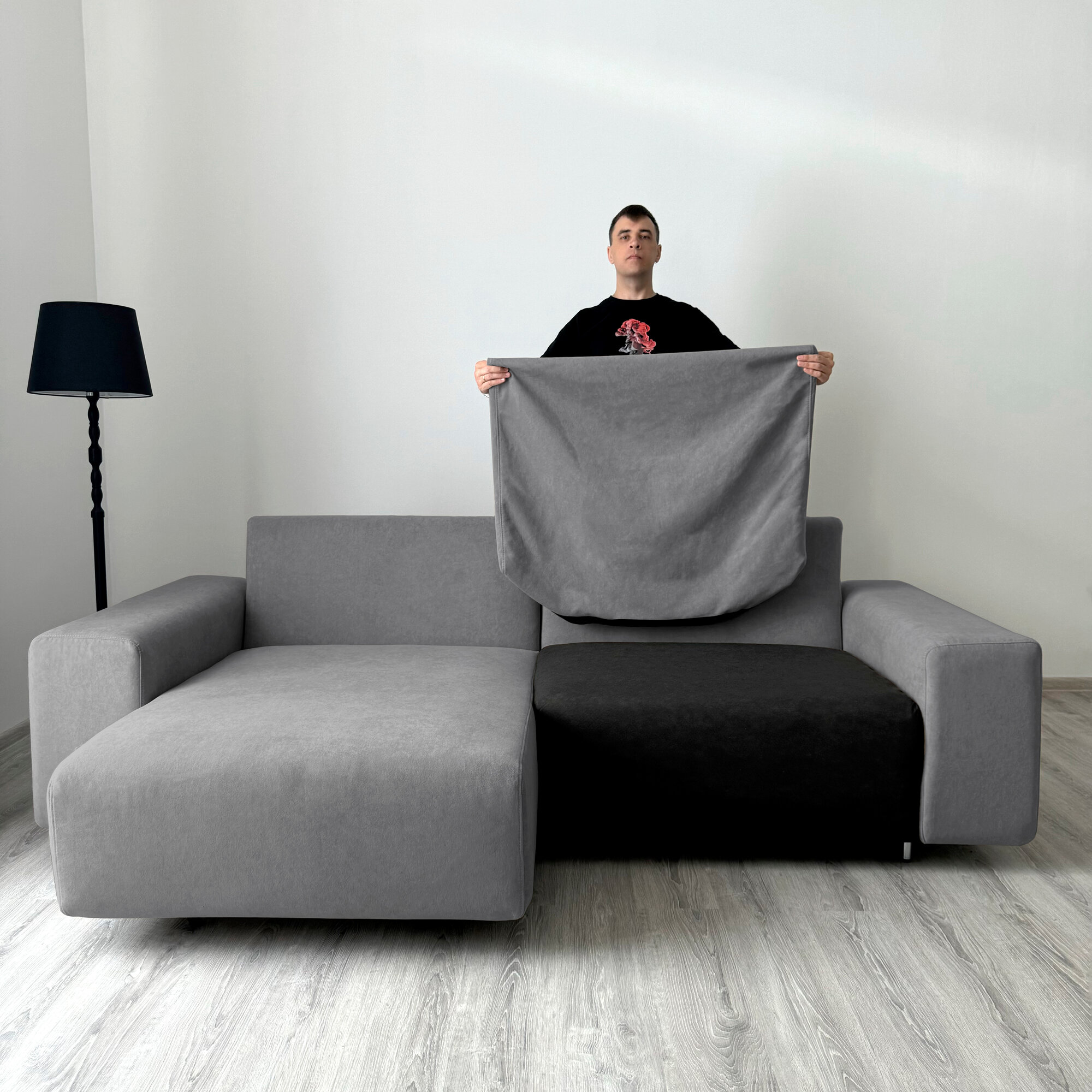 Диван-кровать Redsofa Аурис 260 см графит Teddi. Раскладной угловой диван со съемными чехлами, для дома и офиса (Мебельный гарнитур бытового назначения)