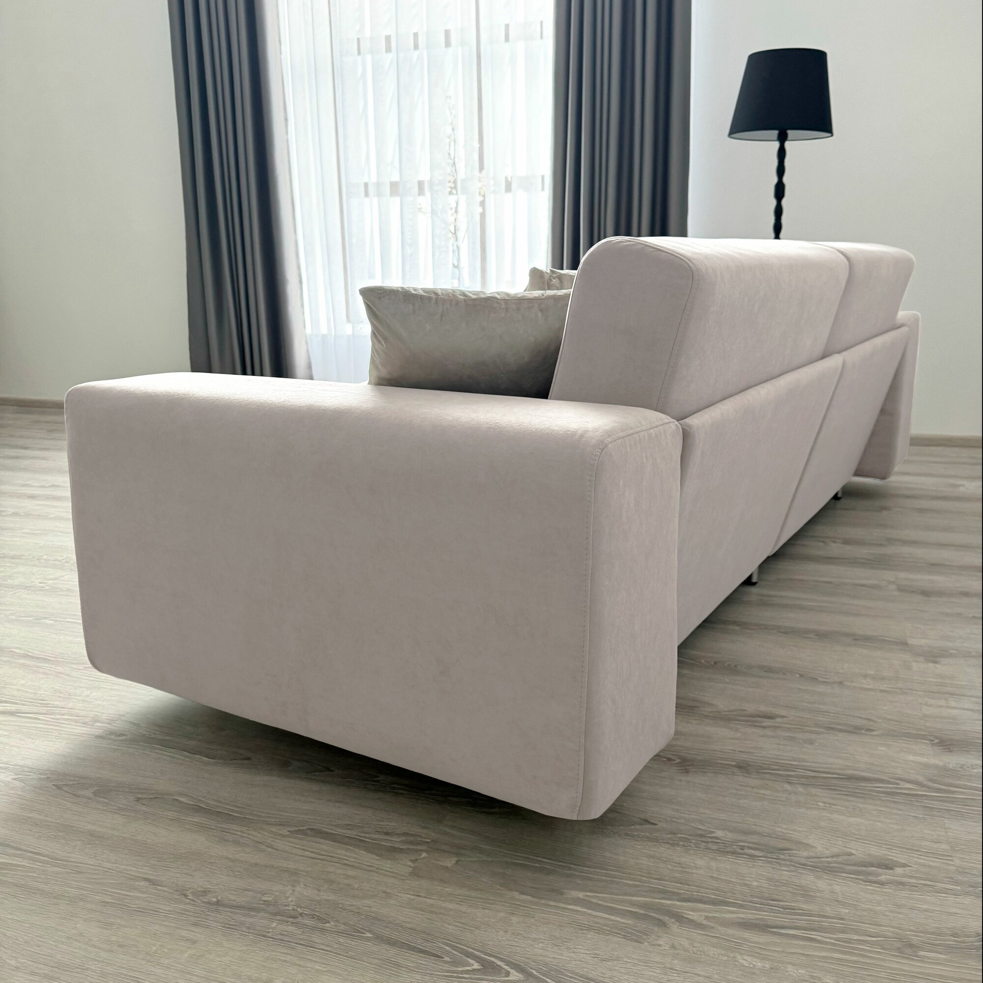 Диван-кровать Redsofa Аурис 260 см светло-серый Teddi. Раскладной угловой диван со съемными чехлами, для дома и офиса.