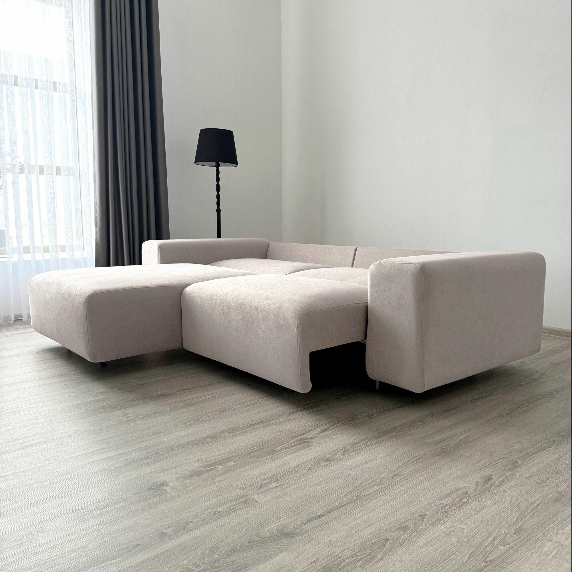 Диван-кровать Redsofa Аурис 260 см светло-бежевый Ocean. Раскладной угловой диван со съемными чехлами, для дома и офиса.