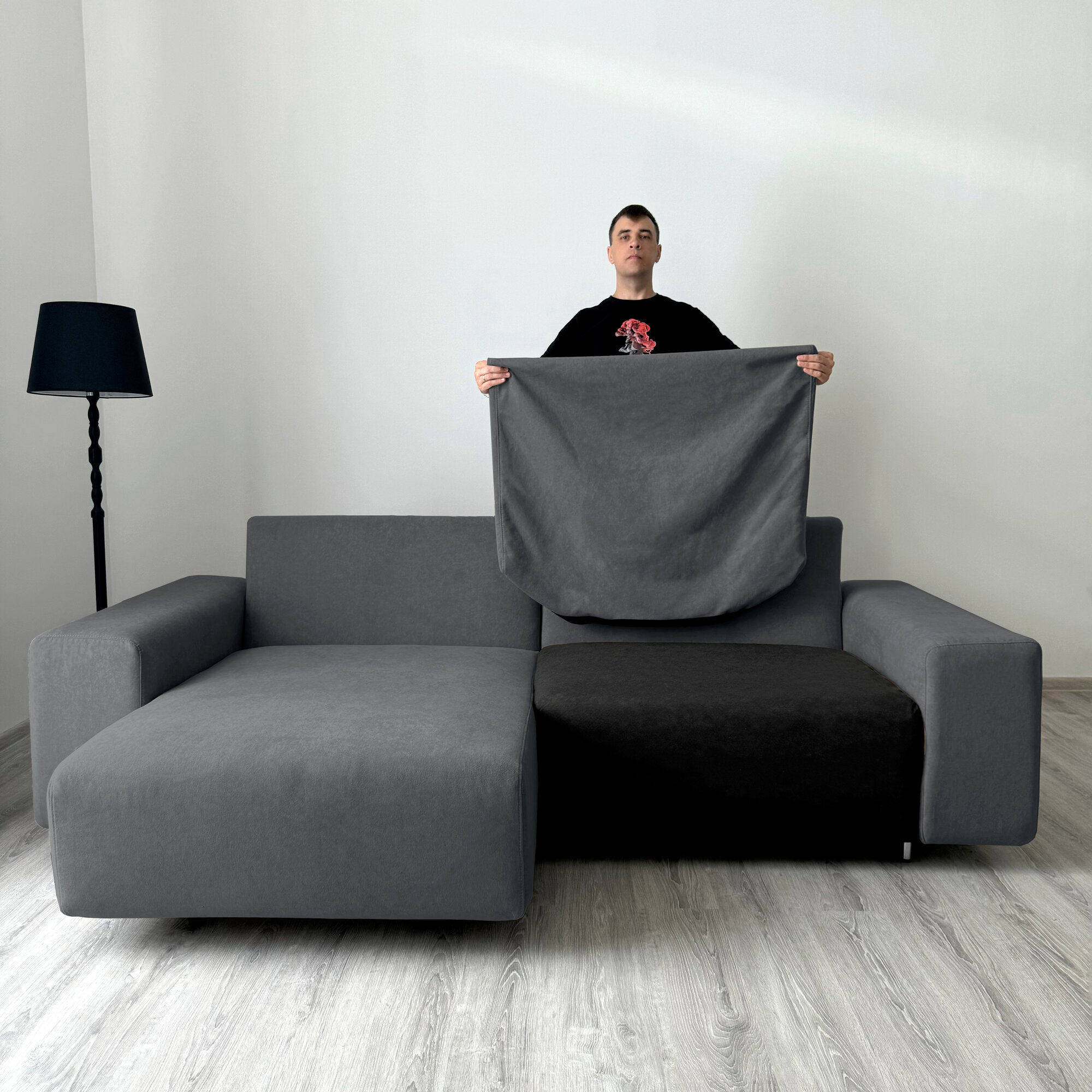 Диван-кровать Redsofa Аурис 260 см графит Teddi. Раскладной угловой диван со съемными чехлами, для дома и офиса.