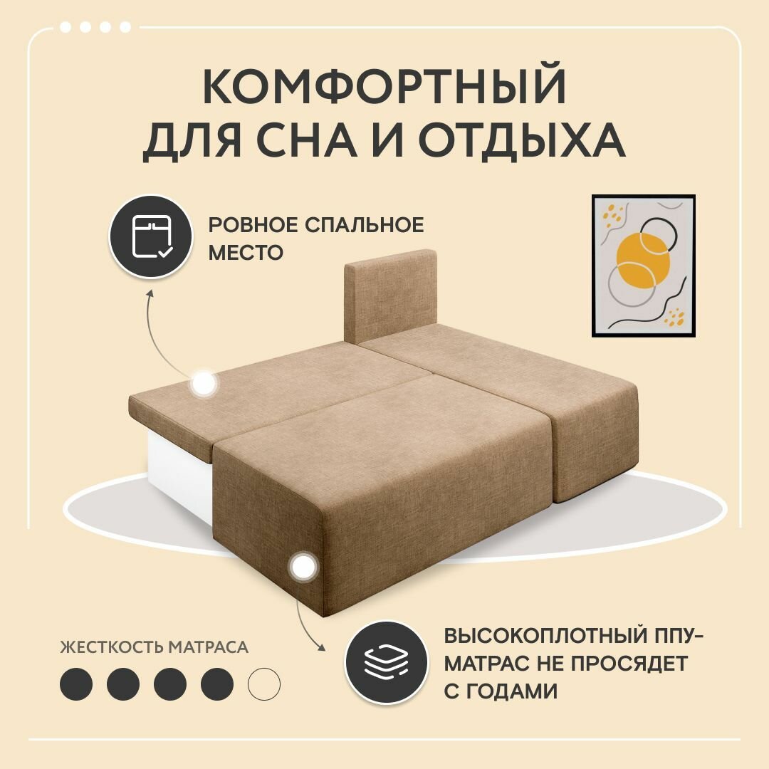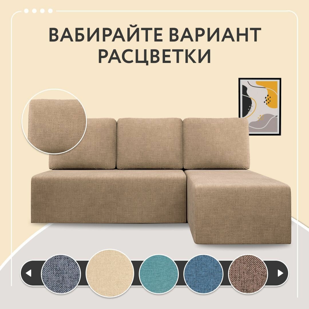 Диван-кровать Dee One раскладной угловой Каир / Консул / Крит, еврокнижка, рогожка, 187x87x84, с ящиком, бежевый